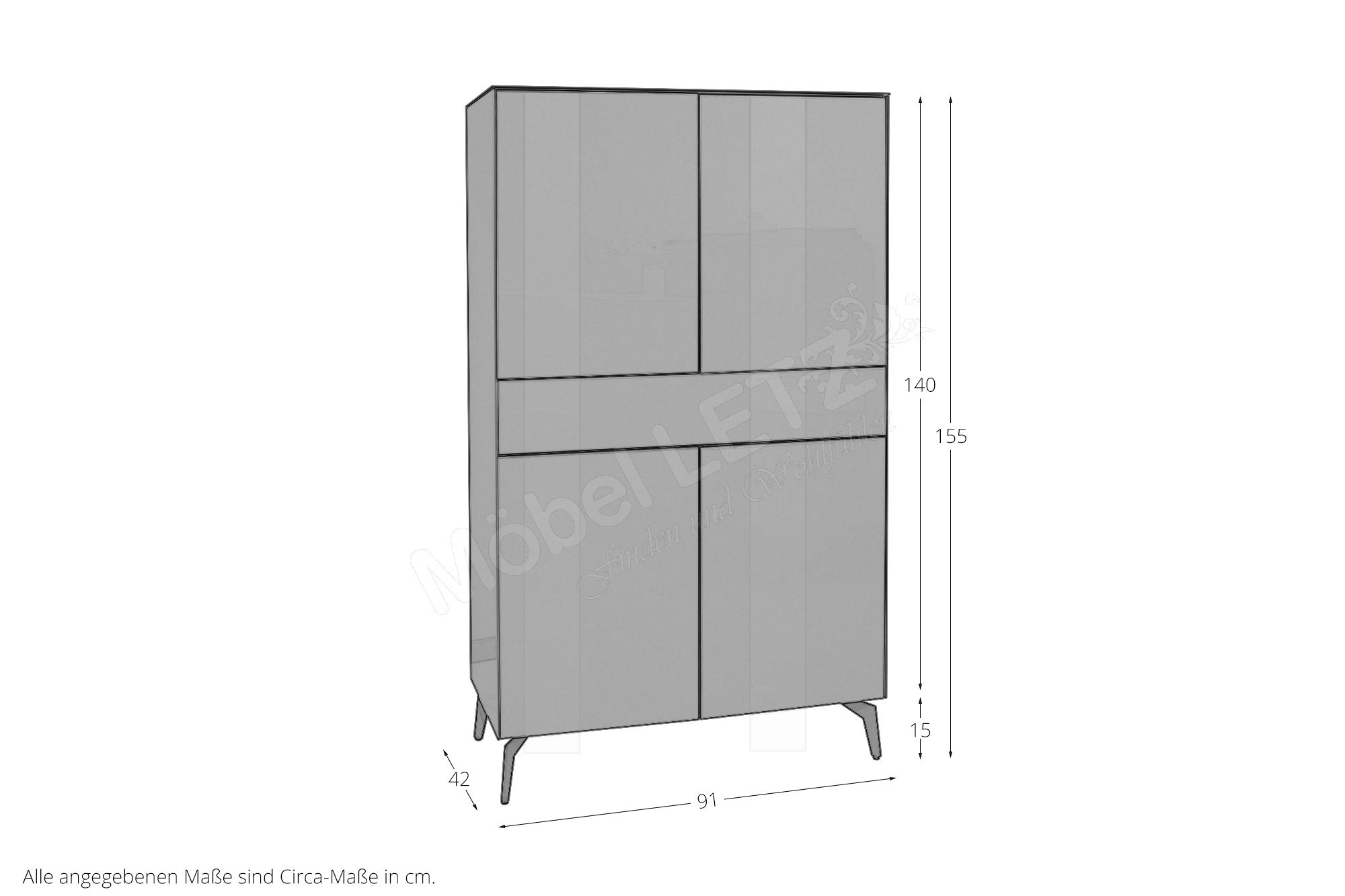 Gesamtmaße des Highboards: BHT ca. 91/154/42 cm (Art-Nr. Metallfüße Eck)