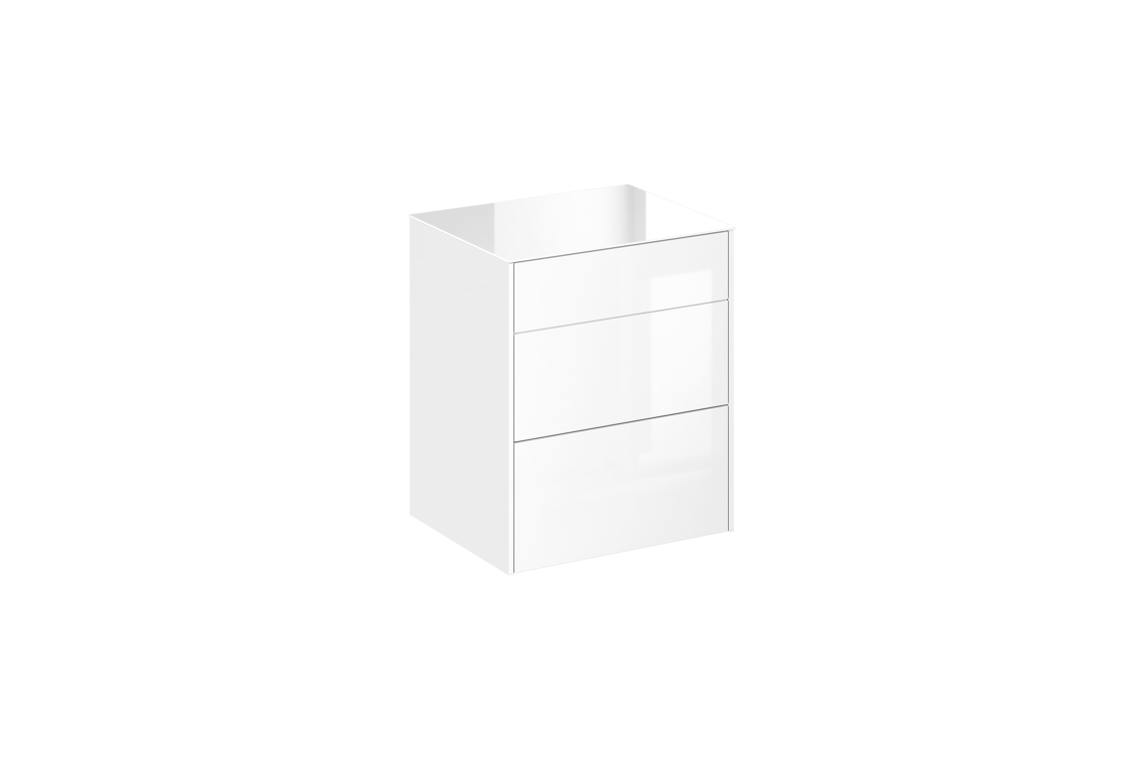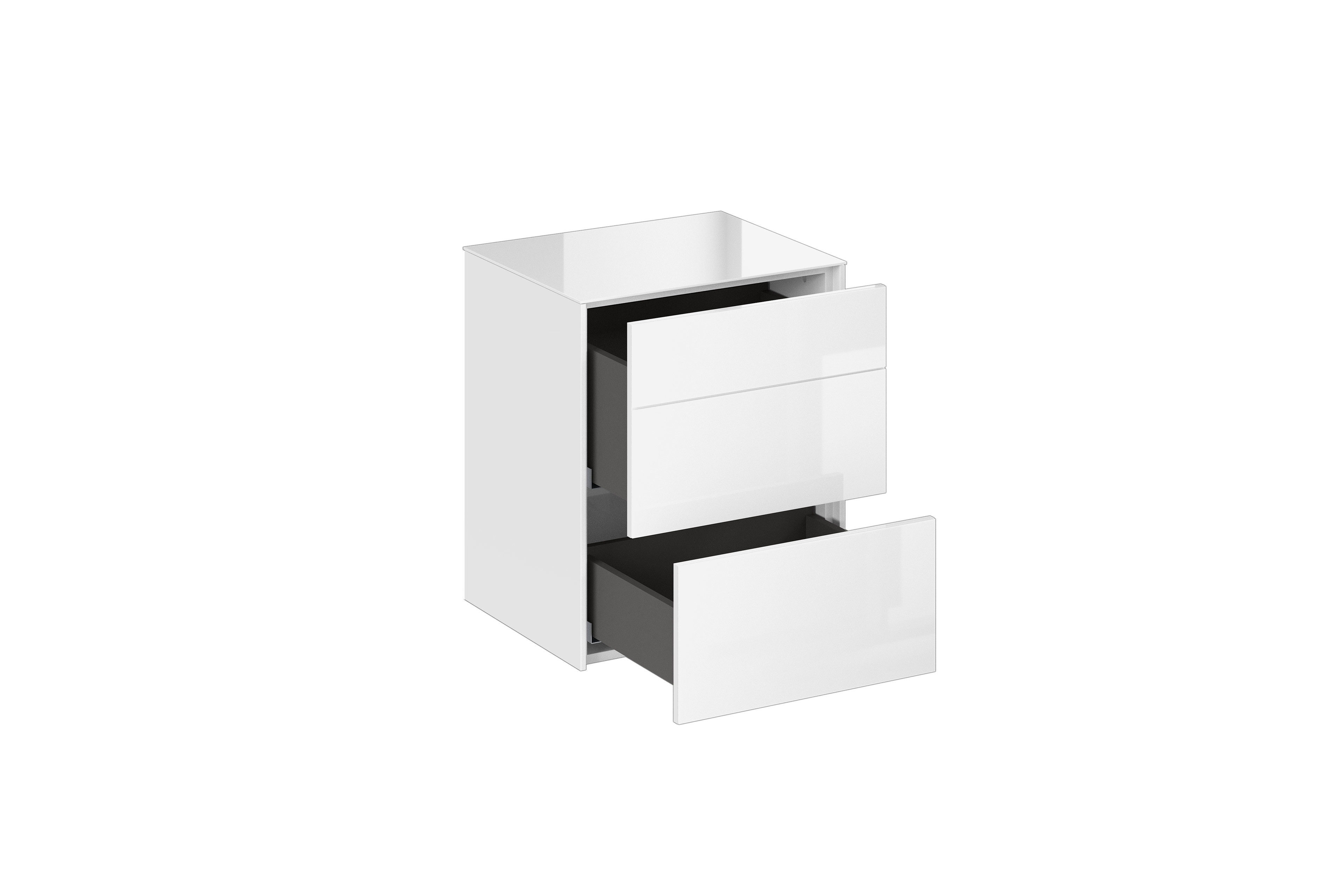 - Front/ Oberboden: Glas, glänzend, ice white