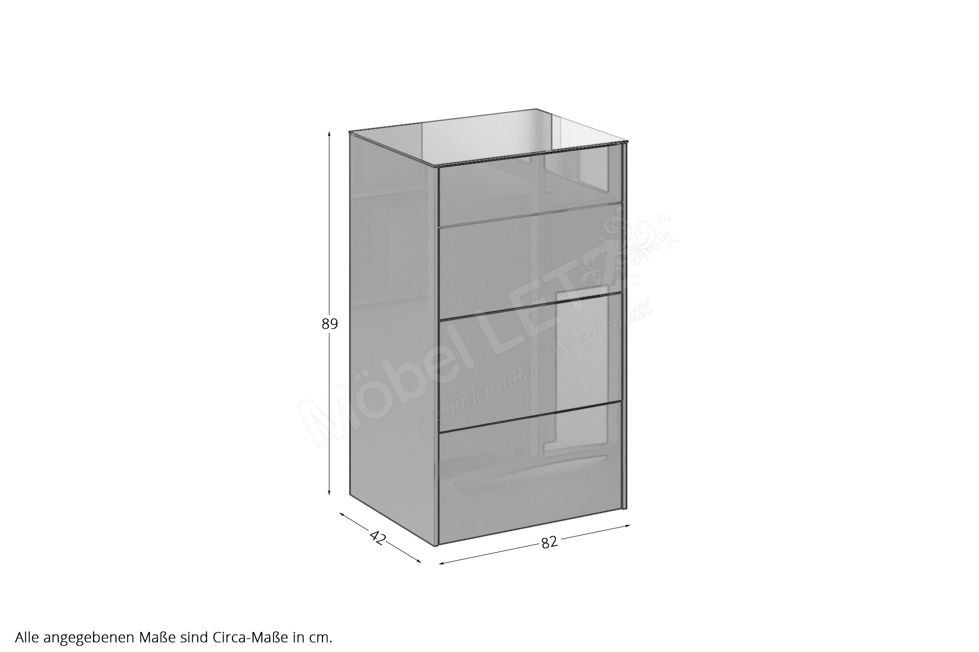 Gesamtmaße der Kommode: BHT ca.: 52/75/42 cm (Art-Nr. Metallfüße Gerade)