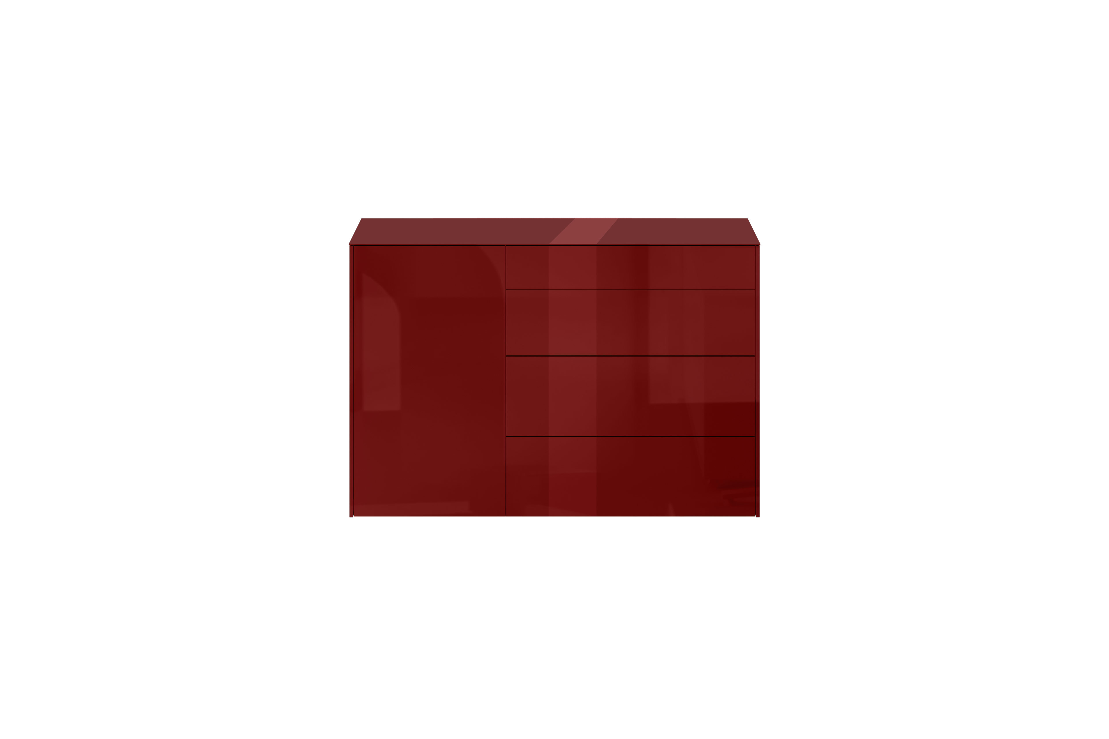 Die Kommode von Mäusbacher aus der Modellreihe Colors verkörpert eine neue Dimension moderner Wohnkultur – souverän, stilvoll und mit höchster Präzision gestaltet. Ihre glänzenden Glasfronten und der edle Glasoberboden in elegantem Bordeauxrot entfalten eine faszinierende Tiefenwirkung und verleihen dem Möbel eine erlesene, fast skulpturale Präsenz. Licht und Oberfläche treten in einen eleganten Dialog und machen den Solisten zu einem exklusiven Blickfang, der den Raum spürbar aufwertet. Der matt bordeauxrot lackierte Korpus bildet hierzu einen ruhigen, kraftvollen Gegenpol. Seine exzellente Verarbeitung und die widerstandsfähige Melaminharzbeschichtung stehen für kompromisslose Qualität, außergewöhnliche Langlebigkeit und eine makellos veredelte Oberfläche – geschaffen für einen anspruchsvollen Alltag auf höchstem Niveau. Die grifflose Gestaltung mit perfekt abgestimmter Push-to-open-Funktion unterstreicht die klare, reduzierte Formensprache und lässt dem Möbelstück als puristischen Solitär wirken: dezent im Auftritt, eindrucksvoll in der Wirkung. Eine Tür sowie drei großzügig dimensionierte Schubkästen, welche auf hochwertigen Unterflurauszügen mit Synchronstange sanft gleiten, eröffnen elegant strukturierten Stauraum für all Ihre Habseligkeiten. Jeder Handgriff vermittelt spürbare Wertigkeit und verwandelt Funktion in ein luxuriöses Nutzungserlebnis. Dezent integrierte, höhenverstellbare Möbelgleiter sorgen für einen sicheren Stand und ermöglichen einen präzisen Bodenausgleich – unsichtbar, aber essenziell für die vollendete Anmutung. Als Teil der vielseitigen Modellreihe Colors lässt sich die Kommode harmonisch mit weiteren Möbeln von Mäusbacher kombinieren und ist in verschiedenen Ausführungen erhältlich. Ein Möbelstück für anspruchsvolle Interieurs, das moderne Eleganz, funktionale Perfektion und luxuriöse Zurückhaltung zu einer stimmigen, zeitlos exklusiven Einheit verbindet.