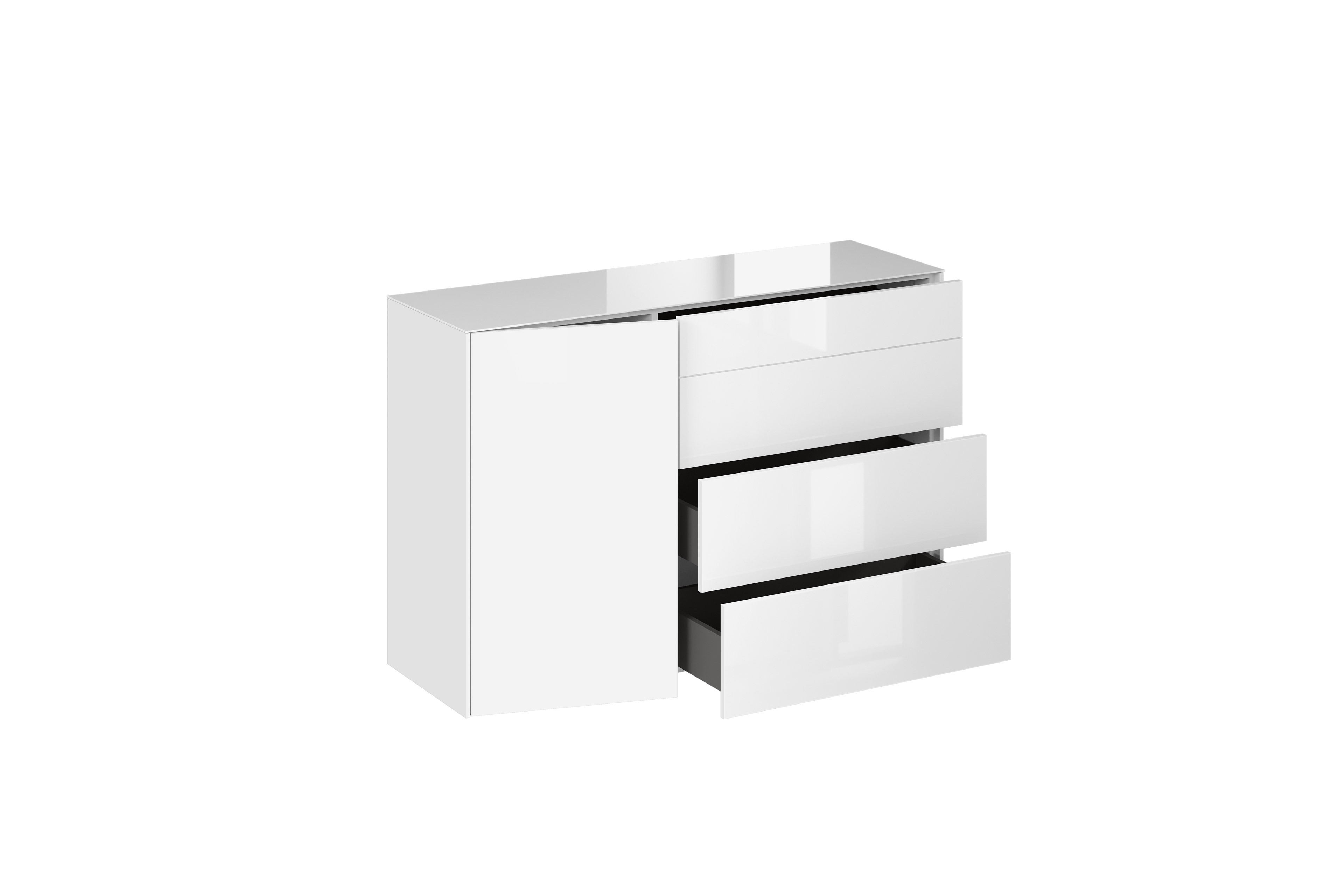 - Kommode mit 1 Tür, 3 Schubkästen und 1 festen Boden