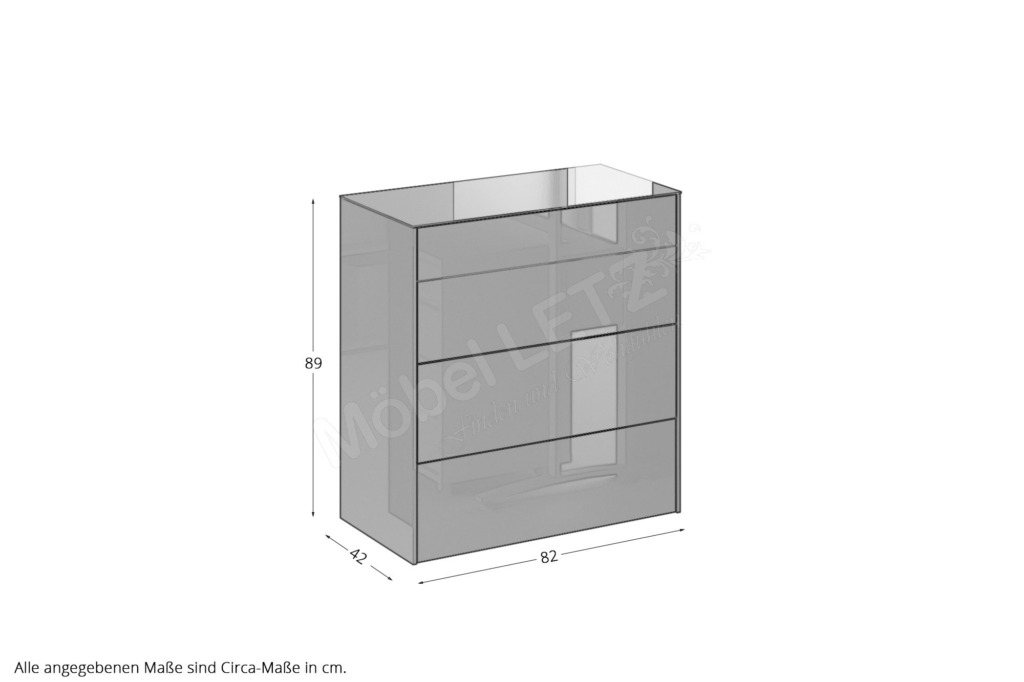 Gesamtmaße der Kommode: BHT ca.: 52/77/42 cm (Art-Nr. Metallfüße Eck)