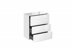 Die Kommode aus der Modellreihe Colors von Mäusbacher ist ein Statement moderner Wohnkultur – elegant, souverän und bis ins Detail durchdacht. Glänzende Glasfronten und ein edler Glasoberboden in elegantem Weiß verleihen dem Möbel eine außergewöhnliche Tiefe und eine luxuriöse Ausstrahlung, die den Raum veredelt und stilvolle Akzente setzt. Der Korpus in matt lackiertem Weiß bildet dazu einen bewusst ruhigen Kontrast. Seine präzise Verarbeitung und die widerstandsfähige Melaminharzbeschichtung stehen für kompromisslose Qualität, Langlebigkeit und eine makellose Oberfläche, die auch im Alltag höchsten Ansprüchen gerecht wird. Die grifflose Gestaltung mit fein abgestimmter Push-to-open-Funktion betont die klare, reduzierte Linienführung und lässt die Kommode als puristischen Solisten wirken – zurückhaltend im Ausdruck, stark in der Wirkung. Drei großzügige Schubkästen eröffnen strukturierten Stauraum und gleiten auf hochwertigen Unterflurauszügen mit Synchronstange sanft. Jeder Handgriff wird so zu einem Moment spürbarer Wertigkeit und Komforts. Dezent integrierte, höhenverstellbare Möbelgleiter sorgen für einen sicheren Stand und ermöglichen einen präzisen Bodenausgleich – unsichtbar, aber wirkungsvoll. Als Teil der vielseitigen Modellreihe Colors lässt sich die Kommode harmonisch mit weiteren Möbeln von Mäusbacher kombinieren und ist in verschiedenen Ausführungen erhältlich. Ein Möbelstück für anspruchsvolle Wohnkonzepte, das moderne Eleganz, funktionale Perfektion und luxuriöse Zurückhaltung auf eindrucksvolle Weise vereint.