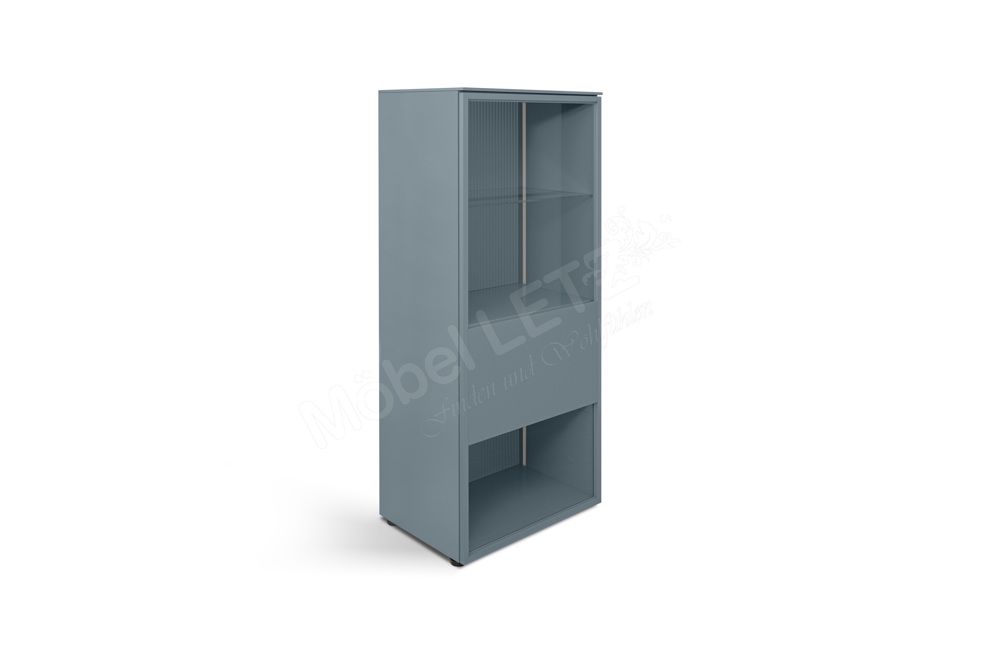 - sichtbare Rückwände: Glattlack, taubenblau, Rillenoptik
