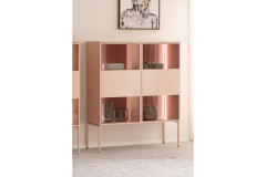 Amaya – ein Name so elegant wie diese Kollektion von SCHÖNER WOHNEN. Das Highboard in Glattlack puder strahlt eine moderne und sanfte Leichtigkeit aus, die Ihren Wohnraum stilsicher bereichern wird. Zwei Glas-/ Holztüren bieten den Blick auf Ihre platzierten Schätze. Mit der optionalen Beleuchtung "Lubia" werden sie gekonnt in Szene gesetzt. Die elegante Rillenrückwand in Samtbeere erzeugt ein aufregendes Licht- und Schattenspiel, welches nicht nur Ihre Dekorationen, Gläser und andere Dinge unterstreicht, sondern ebenso einen eleganten Akzent in Ihrem Wohnzimmer, Speisezimmer oder Gästezimmer schafft. Hinter den Türen mit Push-Beschlag finden Sie vier Böden vor, auf denen Sie die unterschiedlichsten Dinge sicher unterbringen können. Das ungefähr 145 Zentimeter hohe Element wird von vier stabilen Metallfüßen getragen, welche den Korpus stabil tragen. Weitere passende Stücke finden Sie im hinterlegten Typenplaner. Amaya von SCHÖNER WOHNEN – Eleganz auf ganzer Linie.