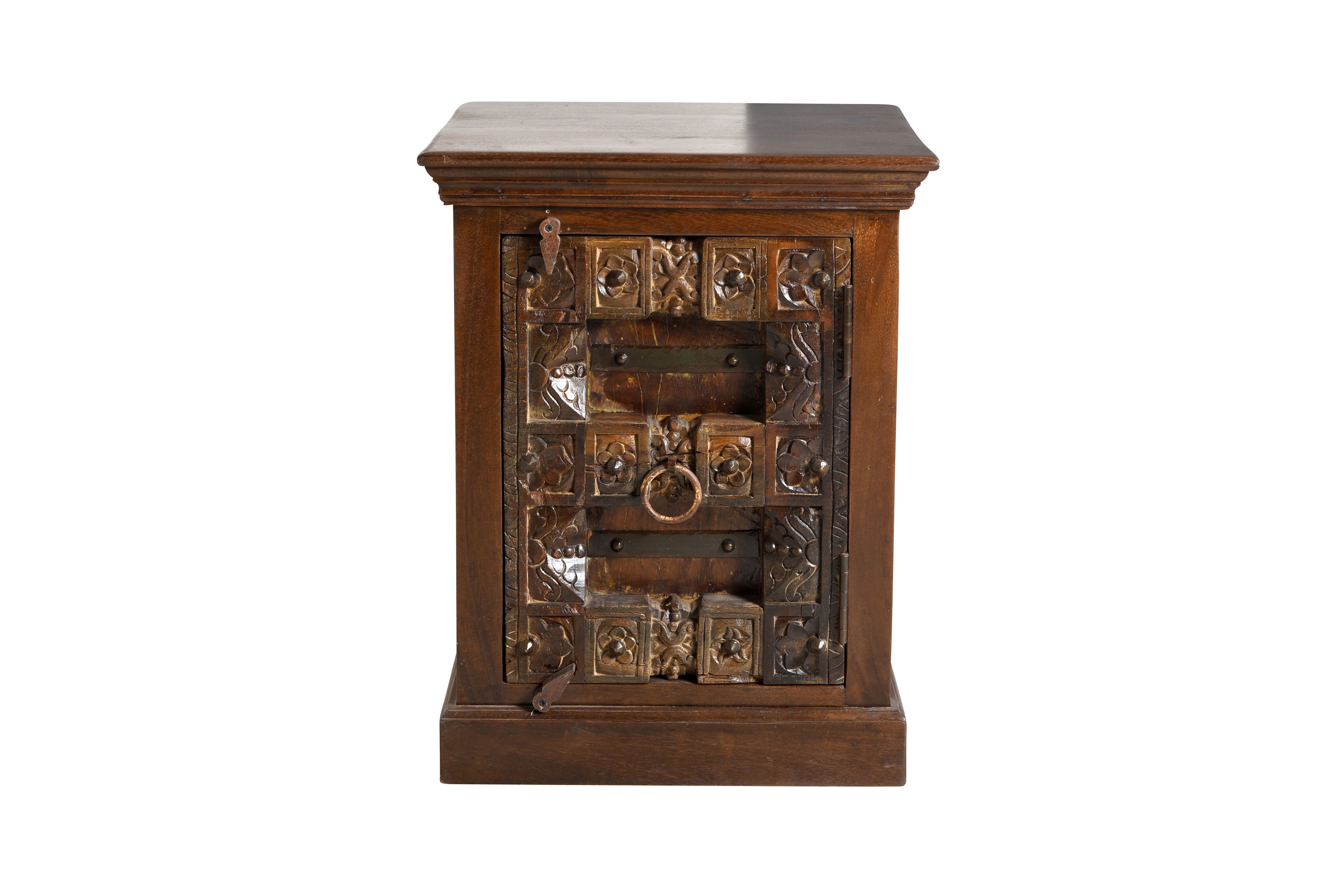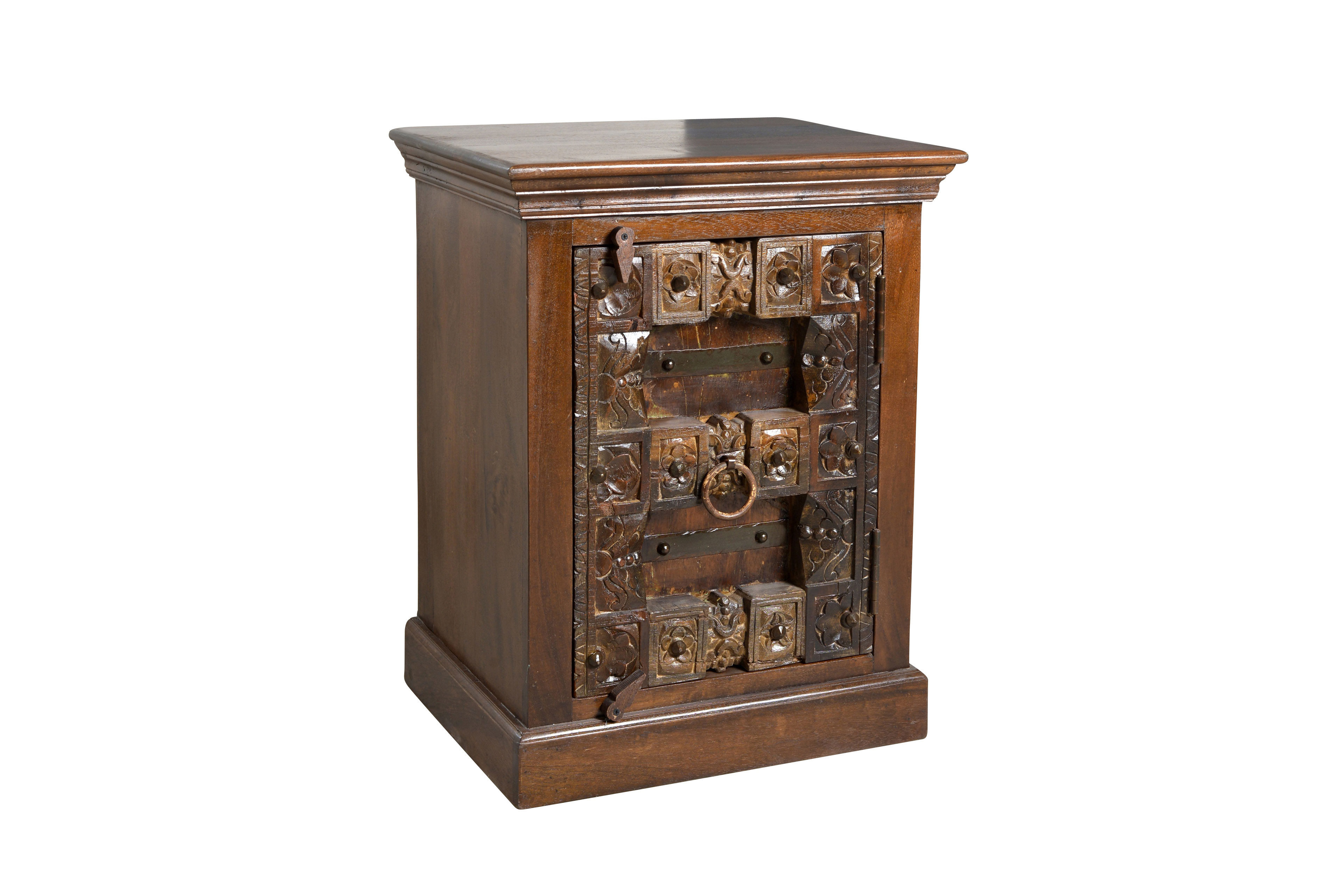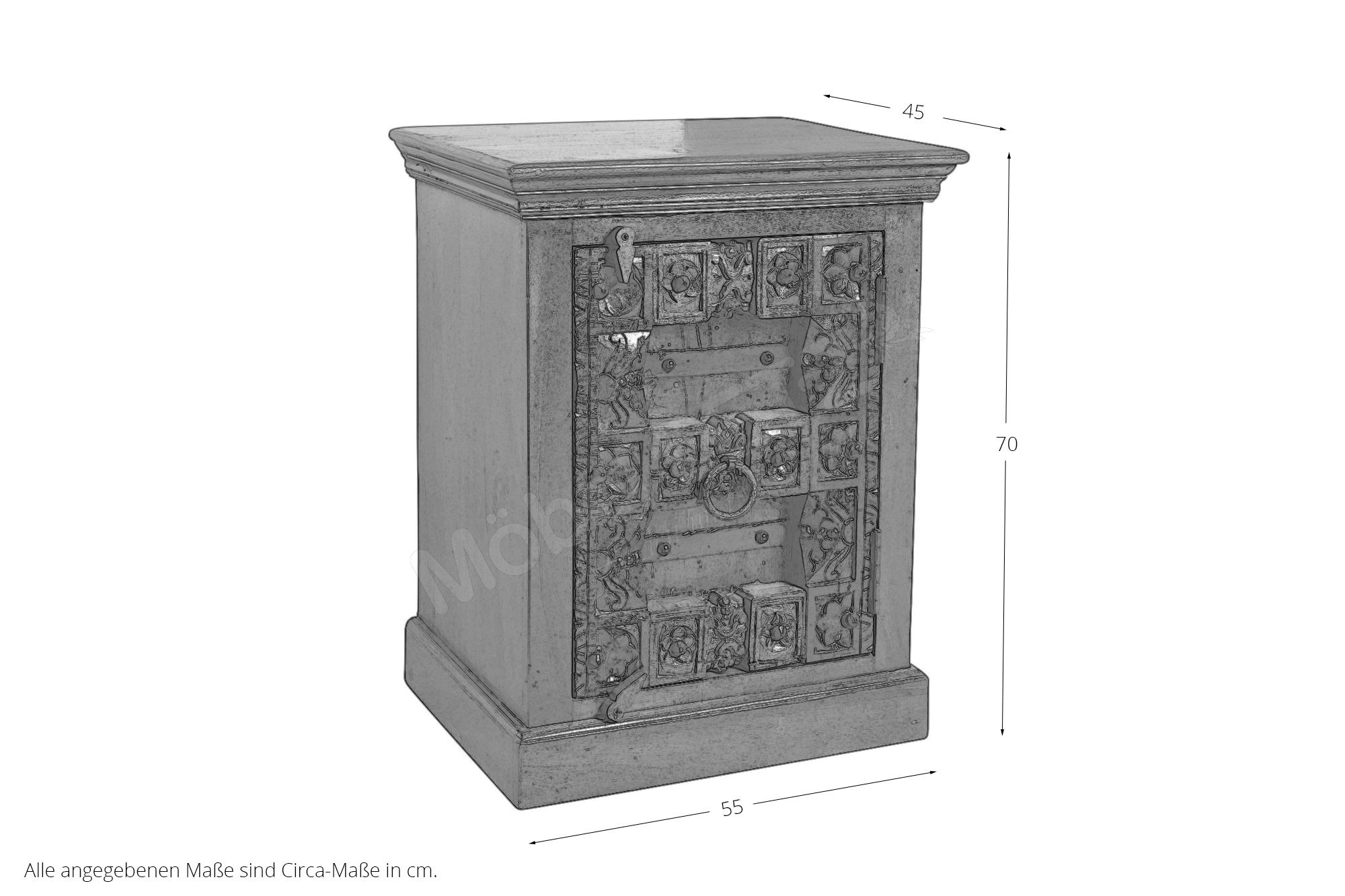 Diese Kommode aus der Kollektion Almirah von SIT Möbel besticht durch ihre detailreiche Gestaltung und den besonderen Charme wiederverwerteter Materialien. Das sorgfältig aufbereitete Holz wird durch dekorative Metallelemente ergänzt, wodurch ein ausdrucksstarker, kolonial inspirierter Stil entsteht. Hinter der Tür verbirgt sich ein praktischer Innenraum mit Einlegeboden, der ausreichend Platz für persönliche Gegenstände, Bücher oder andere Utensilien bietet und so für Ordnung sorgt. Die großzügige Ablagefläche eignet sich ideal, um Dinge wie eine Nachttischlampe, einen Wecker oder Lesematerial stets griffbereit zu platzieren. Durch ihr durchdachtes Design lässt sich die Konsole jedoch nicht nur im Schlafzimmer nutzen, sondern ebenso gut in anderen Wohnbereichen integrieren. Ob im Flur, im Wohnzimmer oder als dekoratives Einzelstück – sie setzt überall stilvolle Akzente. Gerade in kleineren Wohnungen erweist sich das Möbel als praktische Lösung, da es Funktionalität und ansprechende Optik vereint. Die nachhaltige Herstellung aus recyceltem Holz unterstreicht zudem den bewussten Umgang mit Ressourcen und macht jedes Stück zu einem Unikat mit individuellem Charakter.