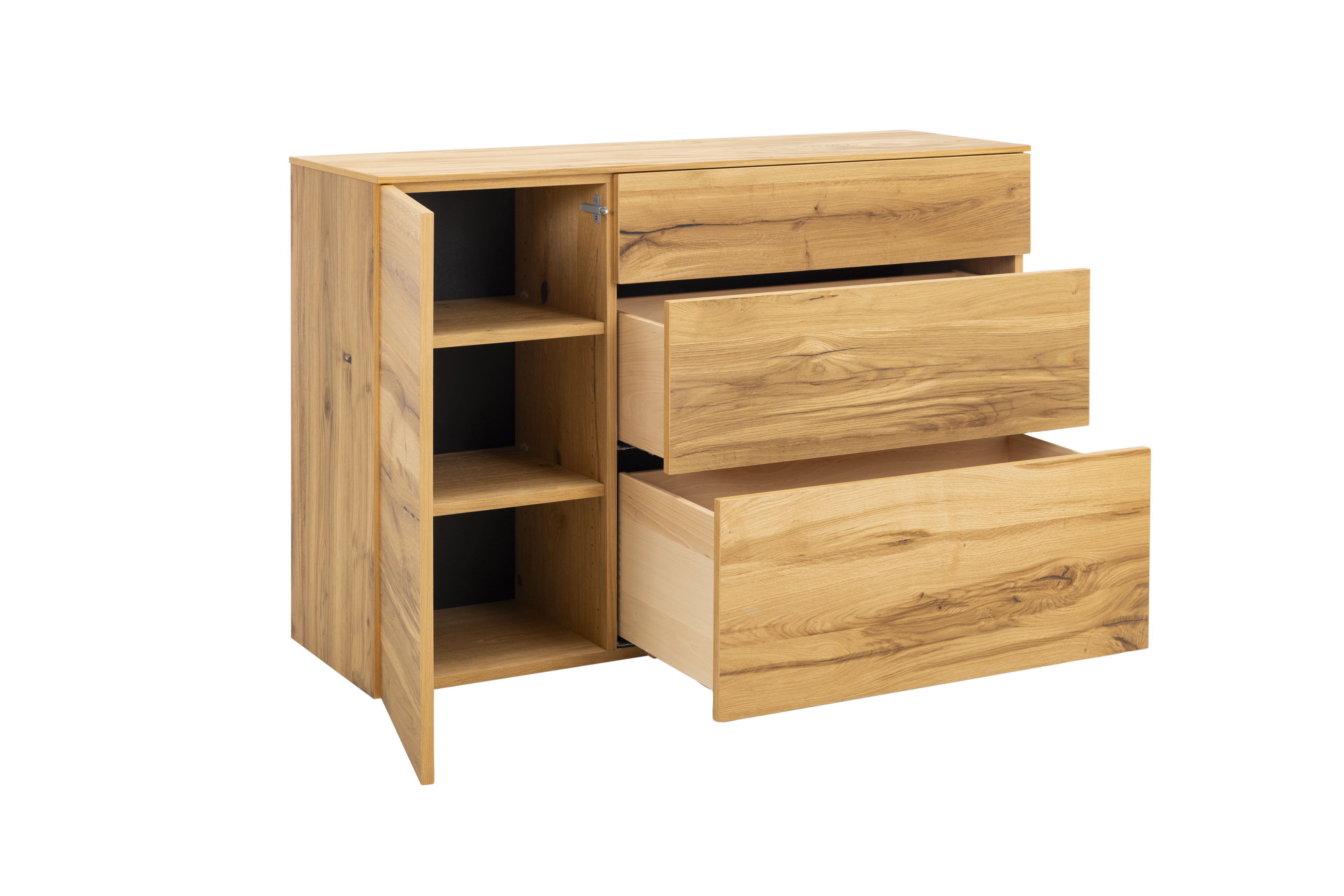 - Sideboard mit 1 Holztür, 2 Holzböden und 3 Schubkästen