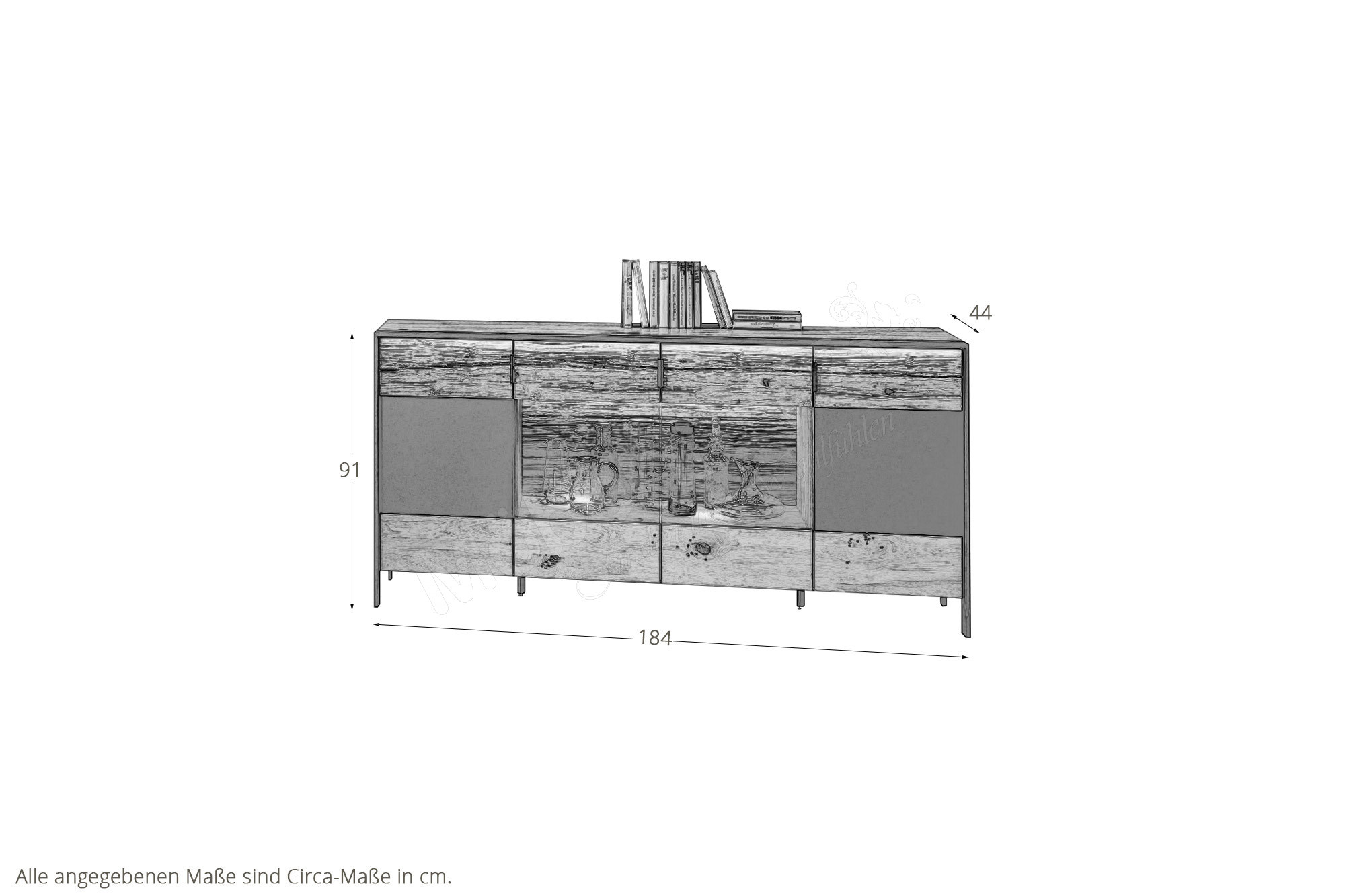 - Sideboard mit 2 Holztüren, 2 Glas-/ Holztüren und 2 Holzeinlegeböden