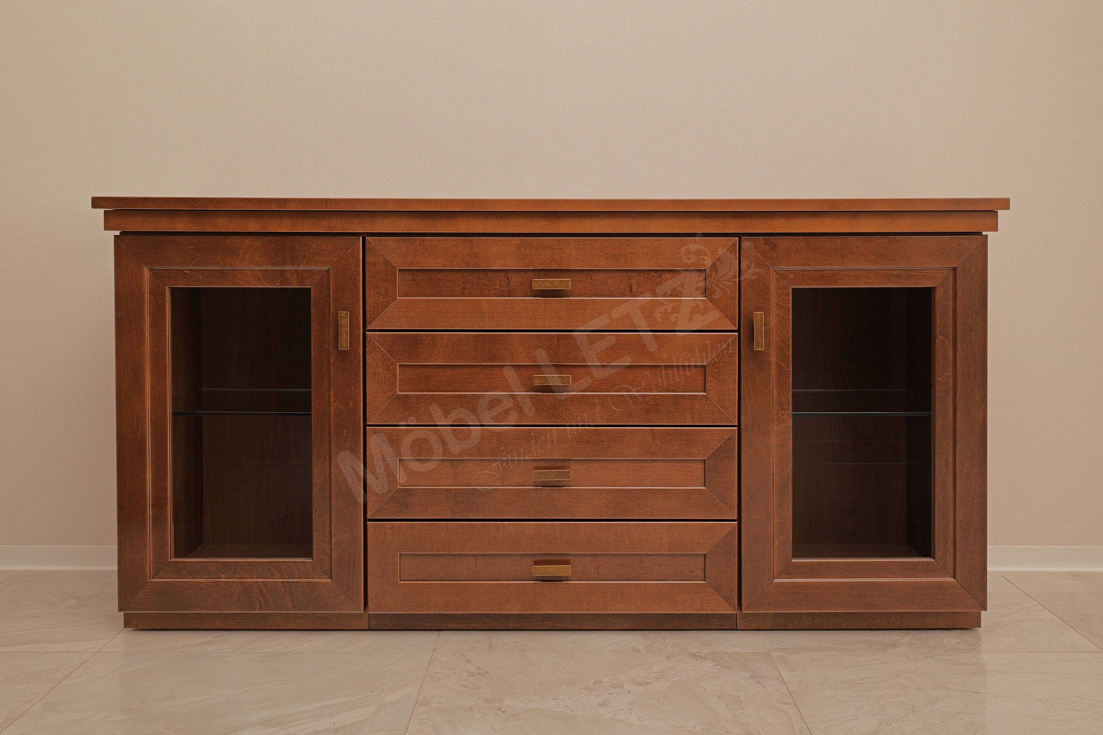 - Sideboard mit 2 Glas-/ Holztüren, 4 Schubkästen und 2 Glasböden