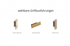 - Schubkästen: kugelgelagerte Unterflurauszüge mit Selbsteinzug und Dämpfung