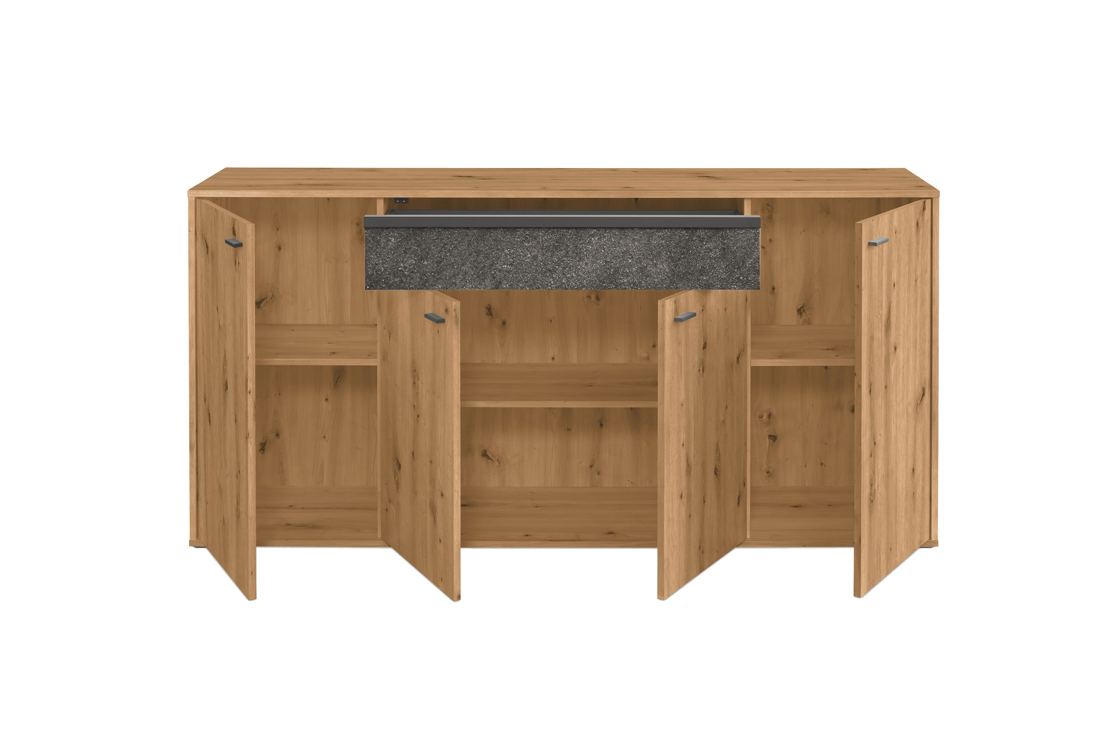 - Sideboard mit 4 Holztüren, 1 Schubkasten, 2 Einlegeboden und 1 fester Boden