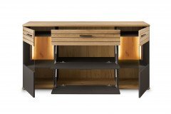 - Sideboard mit 2 Glas-/ Holztüren, 4 Holzböden, 2 Klappen und 1 Schubkasten