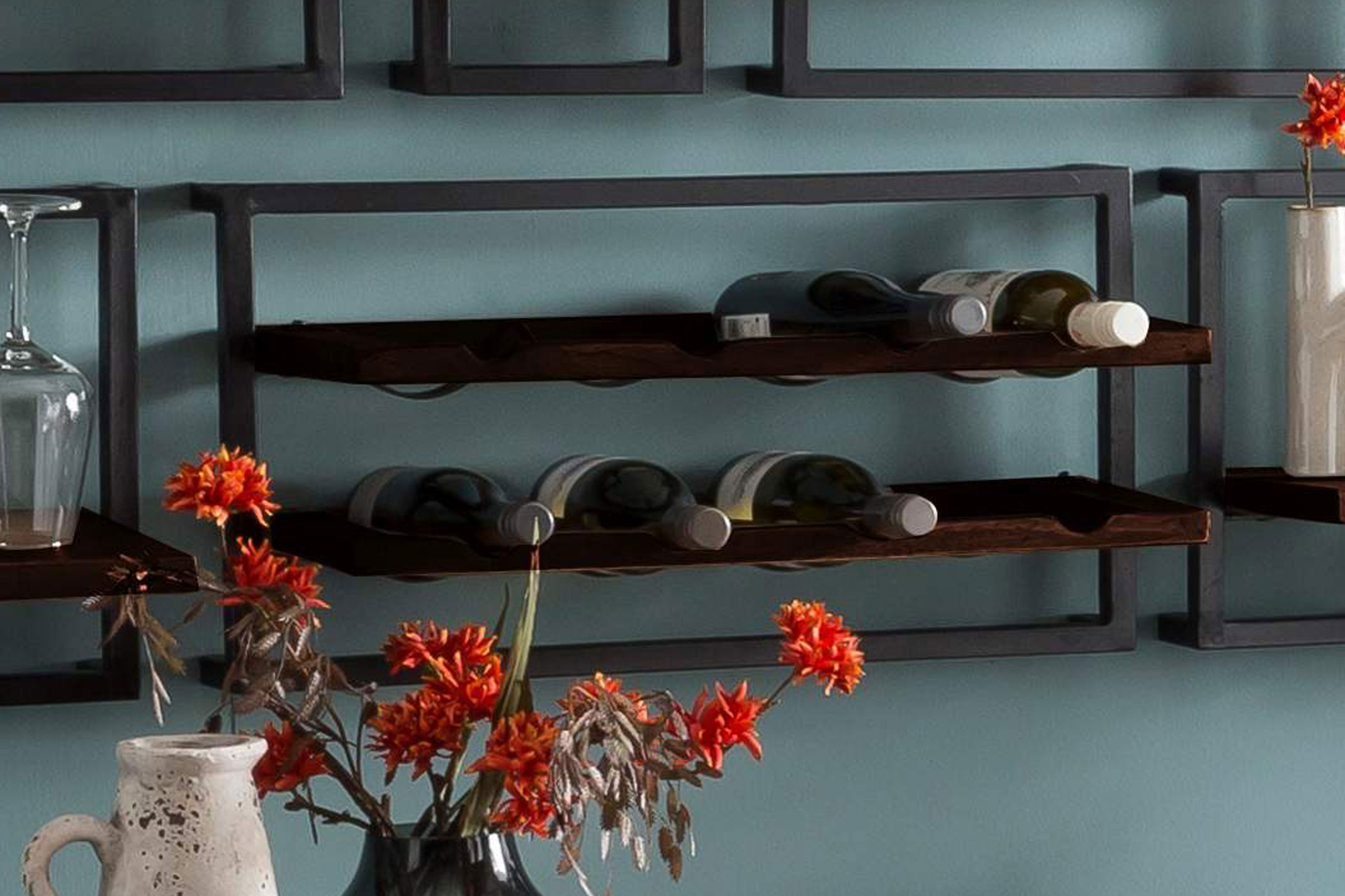Dieses Wandregal Almirah von SIT Möbel bietet eine stilvolle Möglichkeit, Weinflaschen platzsparend und zugleich dekorativ zu präsentieren. Bis zu acht Flaschen finden hier ihren festen Platz und werden übersichtlich sowie griffbereit aufbewahrt. Durch die Wandmontage bleibt wertvolle Stellfläche frei, während gleichzeitig ein ansprechender Blickfang entsteht. Das Zusammenspiel aus dunkel gebeiztem, wiederverwertetem Holz und stabilen Metallelementen verleiht dem Regal einen modernen Industrial-Charakter mit einer warmen, gemütlichen Ausstrahlung. Besonders in Kombination mit edlen Flaschen entfaltet das Design seine volle Wirkung und sorgt für ein stilvolles Ambiente. Wer zusätzlichen Stauraum benötigt oder eine individuelle Wandgestaltung umsetzen möchte, kann mehrere Regale miteinander kombinieren und ganz nach eigenem Geschmack anordnen. So entsteht eine flexible Lösung, die sich unterschiedlichen Raumkonzepten anpasst. Dank seines zeitlosen Designs lässt sich das Regal mühelos mit verschiedenen Einrichtungsstilen verbinden, egal ob modern oder klassisch. Gefertigt aus recyceltem Holz, steht es zudem für einen bewussten Umgang mit Ressourcen und verbindet Funktionalität mit ästhetischem Anspruch.