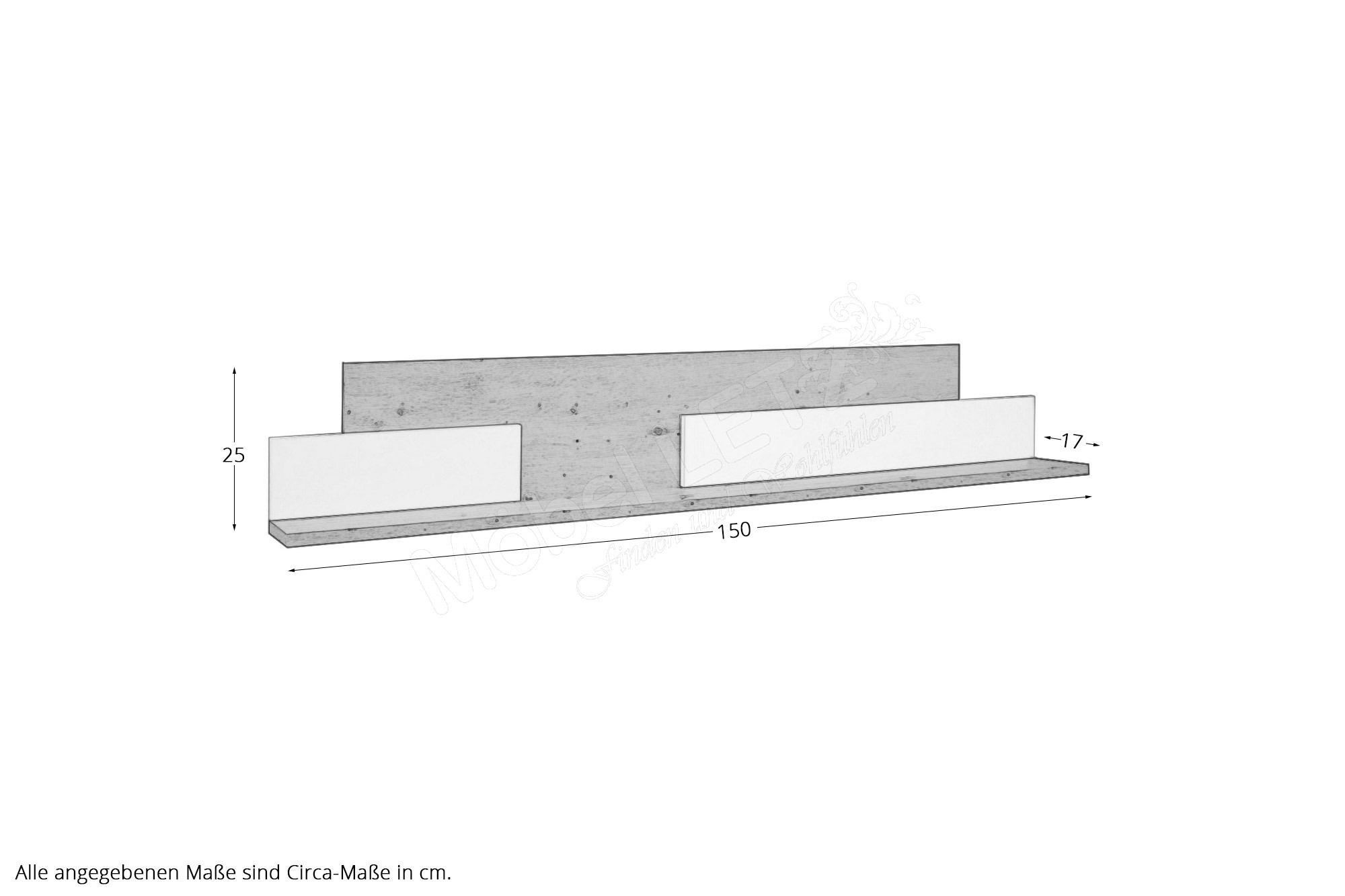 - 1 x WB-150 - Wandboard, BHT ca.: 150/25/17 cm