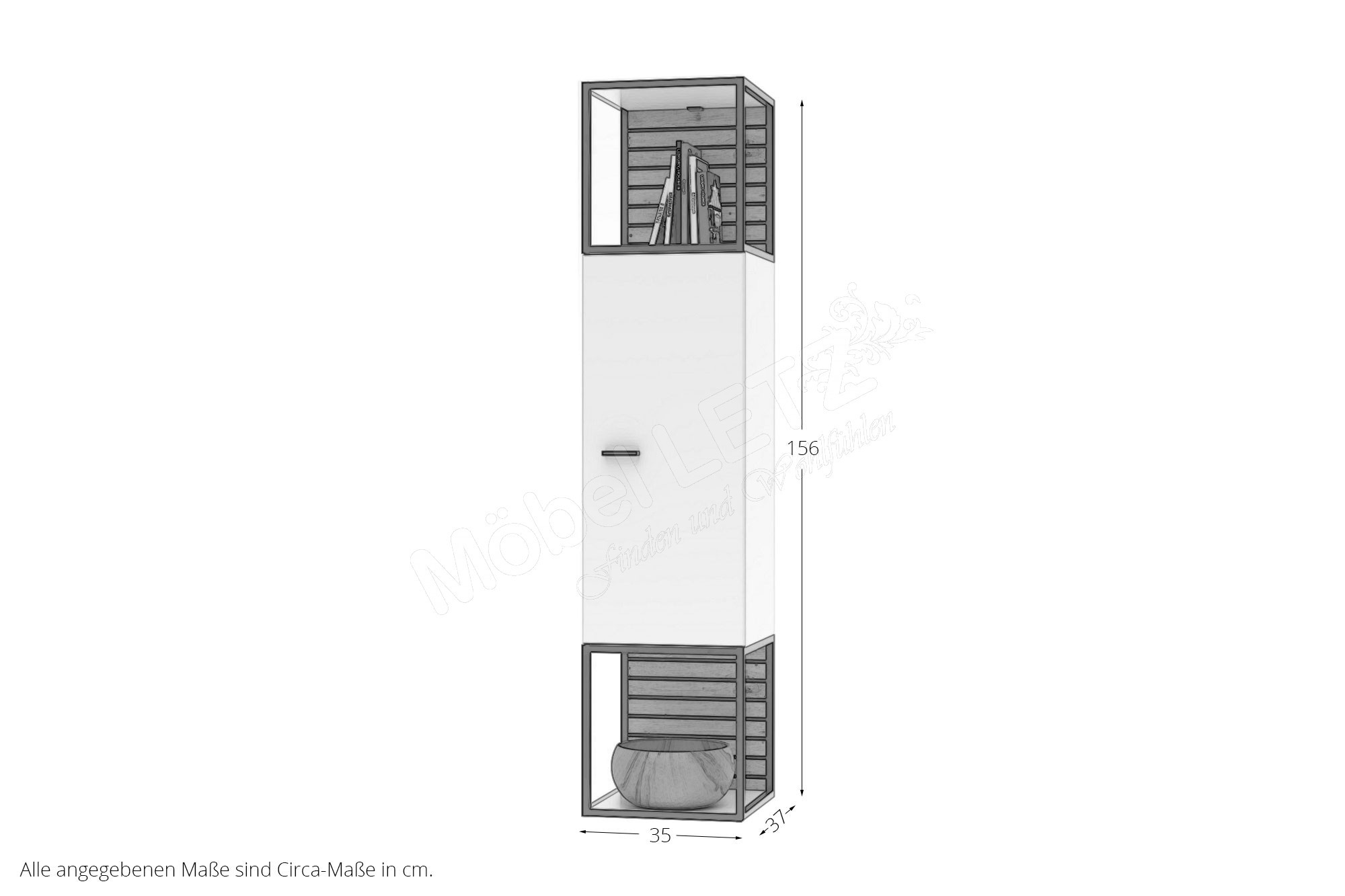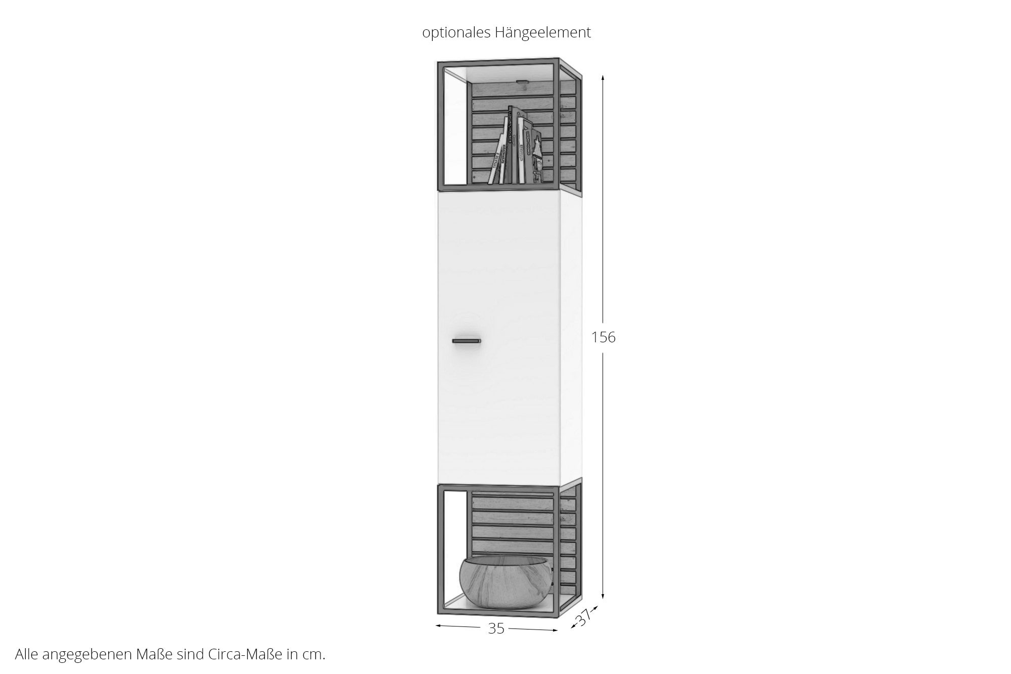 - Hängeelement mit 1 Holztür mit Linksanschlag, 2 offenen Fächern und 2 Ablageböden