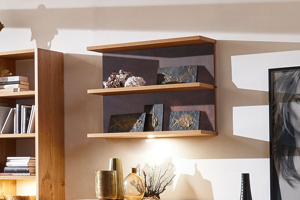 Ein Möbel, das nicht nur Raum nutzt, sondern Atmosphäre erschafft: Das Hängeregal aus der Kollekion Selecto-Living von Schösswender ist eine stilvolle Komposition aus markantem Metall und sinnlich warmen Holz – ein Statement für eine anspruchsvolle Wohnkultur. Die Rückwand wurde aus Metall in edler Rostoptik gefertigt und verleiht dem Solisten eine ausdrucksstarke Tiefe. Drei Ablageböden aus massiver Wildeiche, deren charaktervolle Maserung im barrique geölten Finish eine intensive, beinahe samtige Farbigkeit entfaltet, schaffen Raum für Ihre Lieblingsstücke, Designobjekte oder Bücher, die Ihre Wohnwelt veredeln und Ihre Individualität unterstreichen. Als Teil einer umfangreichen Schösswender-Kollektion lässt sich das Regal mit zusätzlichen Einzelmöbeln flexibel erweitern, um das harmonische und luxuriöse Gesamtbild zu vollenden. Schauen Sie hierfür in den hinterlegten Möbelplaner oder in die Rubrik „Alle Artikel aus der Serie“ und gestalten Sie sich Ihr individuelles Möbelensemble. Mit den Möbeln von Schösswender erleben Sie ein ein neues Wohngefühl.
