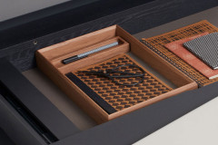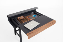 - Sekretär mit 1 verschiebbaren Schreibtischplatte, 1 Metallblende und 1 Steckdose mit USB Ladesteckdose