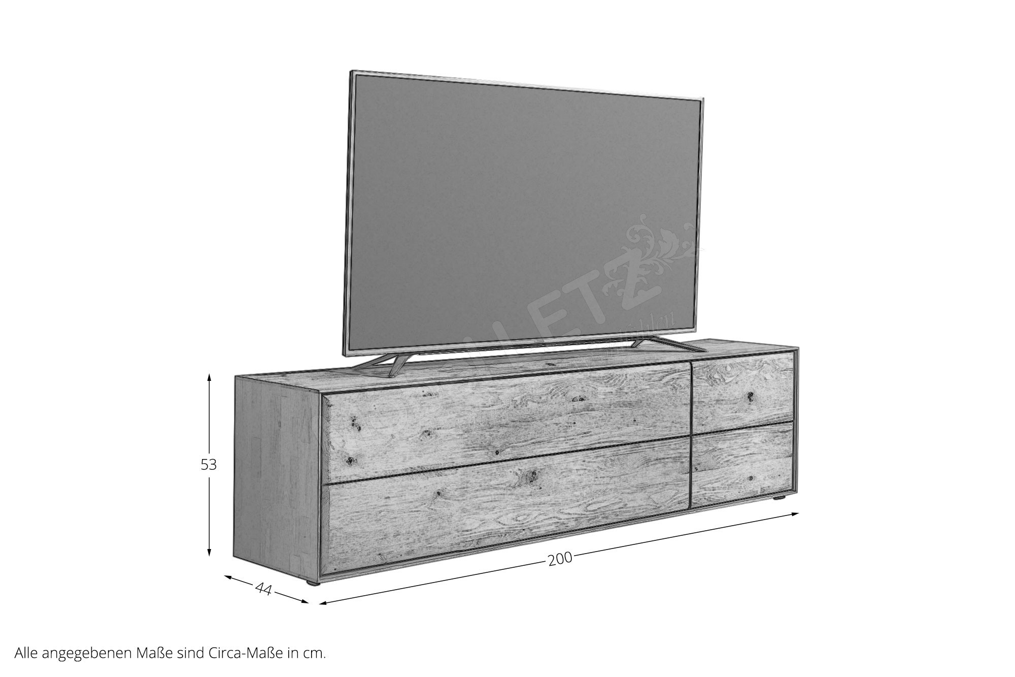 - 1 x 8640-3201 - Lowboard, BHT ca.: 200/53/44 cm