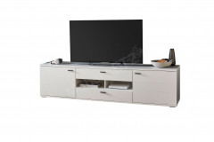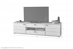 - Lowboard mit 2 Holztüren, 2 Schubkästen, 2 Holzeinlegeböden, 2 Konstruktionsböden und 2 offenen Fächern