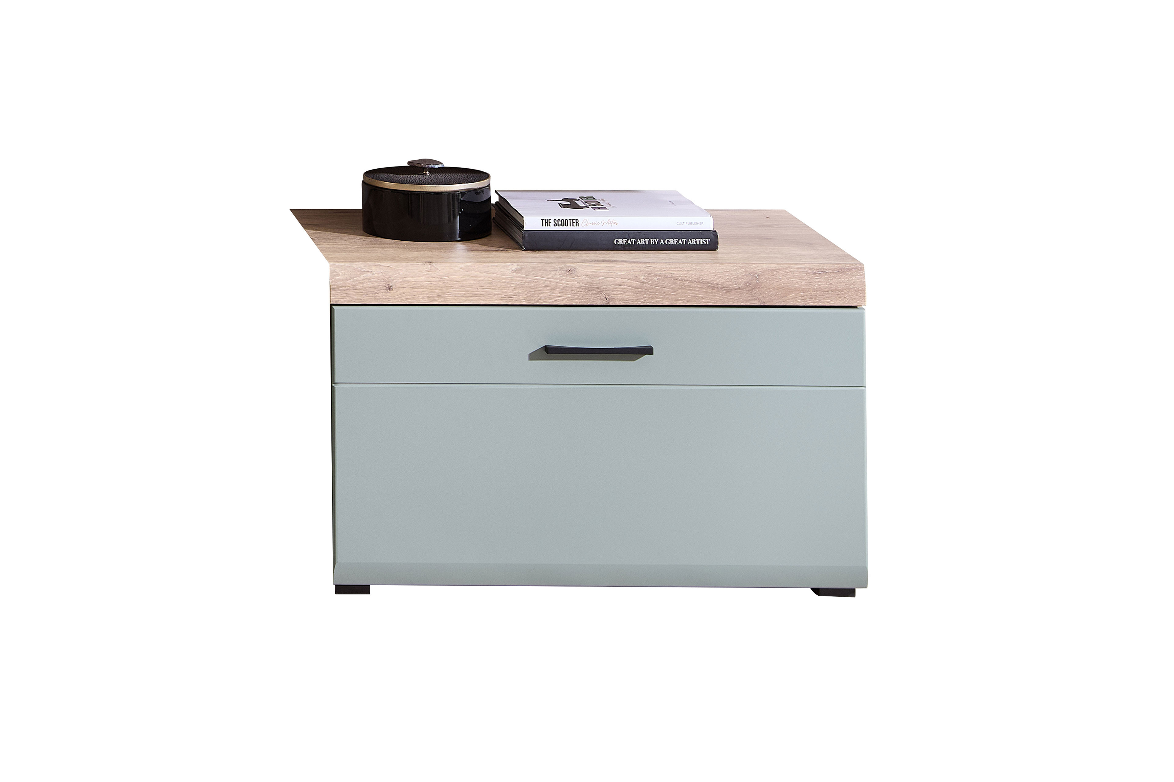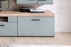 Dieses Unterteil aus der Kollektion Fun Plus II von Innostyle ist mehr als ein funktionales Möbelstück – es ist ein stiller Blickfang, der Räume verändert, ohne laut zu sein. Das sanfte Schilfgrün erinnert an Natur, Ruhe und Ausgeglichenheit und verleiht dem Raum eine moderne Leichtigkeit. In Kombination mit der warmen Viking-Oak-Absetzung entsteht ein spannendes Zusammenspiel aus Frische und Geborgenheit, das sofort ein Gefühl von Zuhause vermittelt. Die schwarzmatten Metallgriffe setzen klare Akzente und unterstreichen den selbstbewussten Charakter des Designs, während die eckigen Kunststofffüße dem Unterteil eine schwebende Eleganz verleihen und für eine zeitgemäße Optik sorgen. Der integrierte Schubkasten bietet nicht nur praktischen Stauraum, sondern schafft Ordnung für all die Dinge, die man im Alltag gerne griffbereit hat. Jedes Detail wirkt durchdacht, jede Linie bewusst gesetzt. Dieses Möbel fügt sich nicht einfach in einen Raum ein – es erzählt eine Geschichte von Stil, Ruhe und modernem Wohnen. Wer sich dafür entscheidet, wählt kein gewöhnliches Unterteil, sondern ein Designobjekt, das Atmosphäre schafft, Charakter zeigt und den Raum auf leise, aber nachhaltige Weise bereichert.