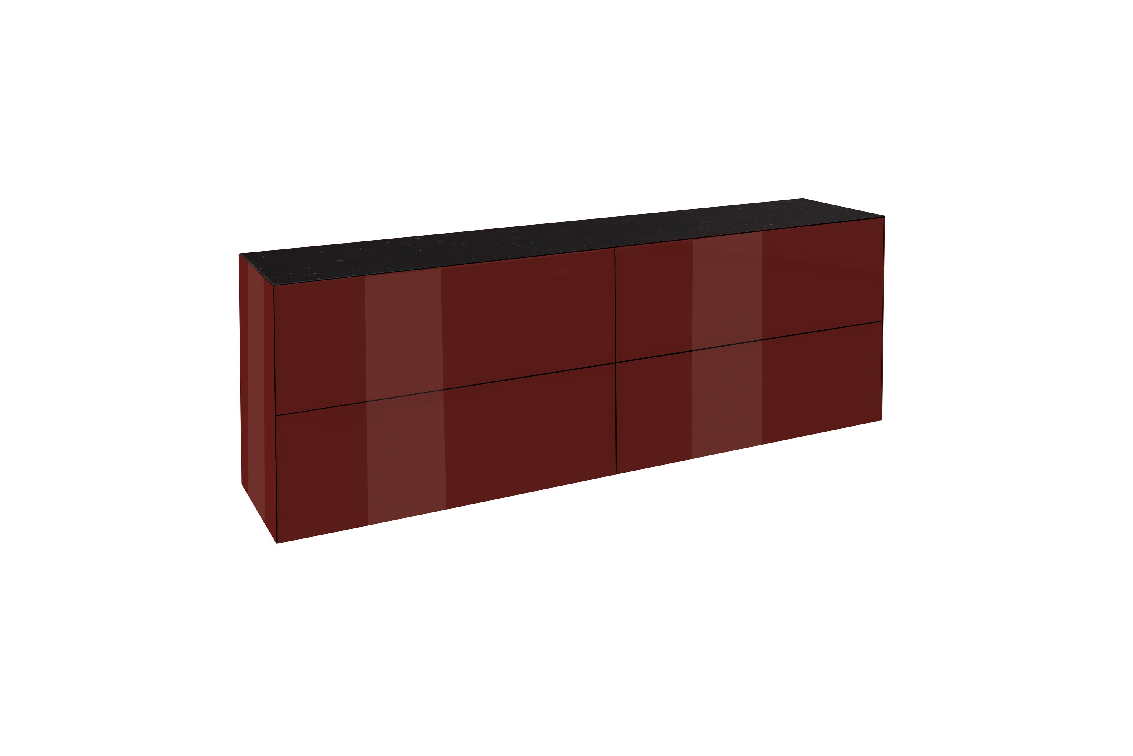 - Korpus (Seitenteile)/ Front: Glas, glänzend, bordeauxrot