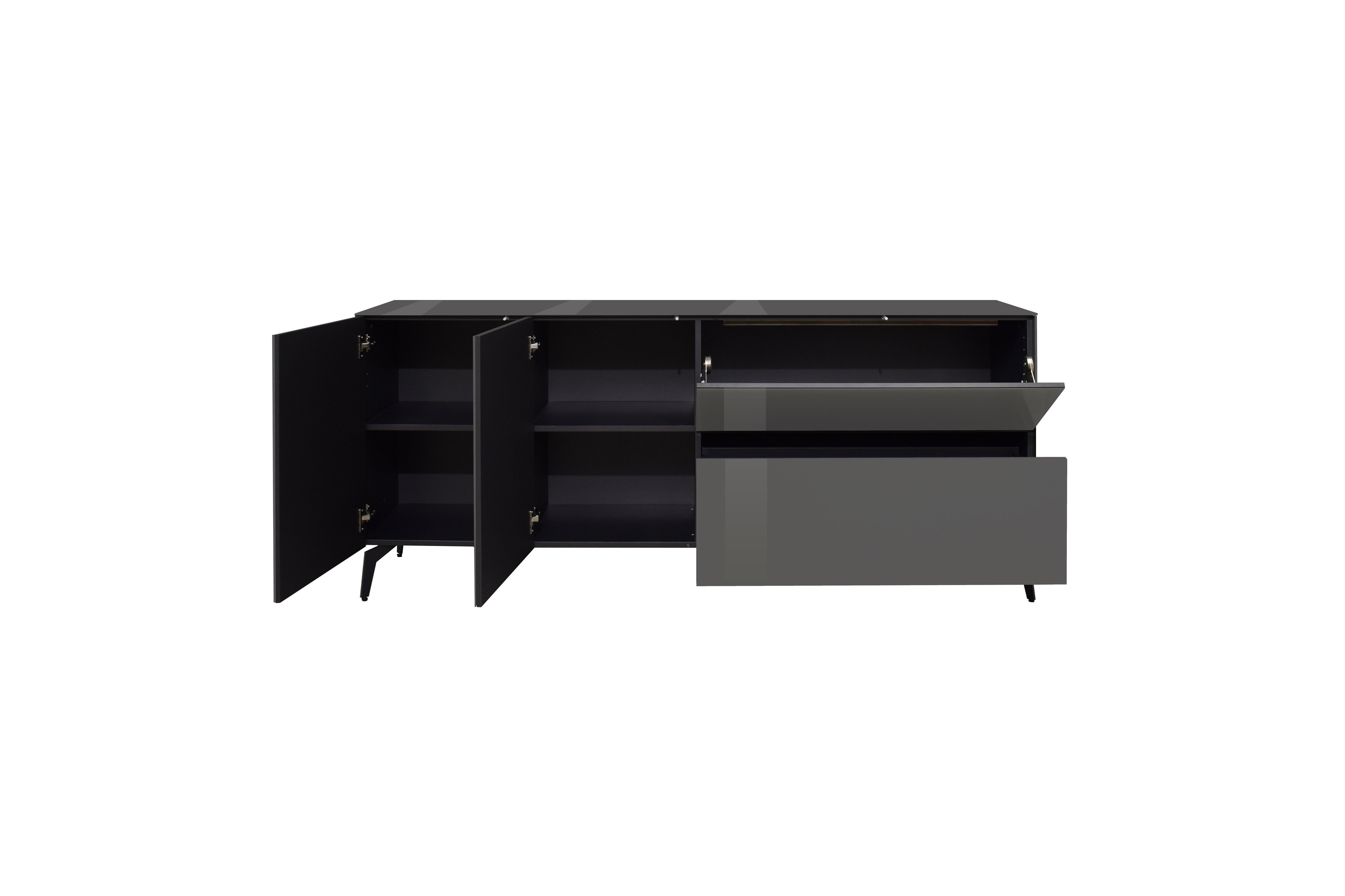 - Lowboard mit 2 Türen, 2 festen Böden, 1 Klappe und 1 Schubkasten