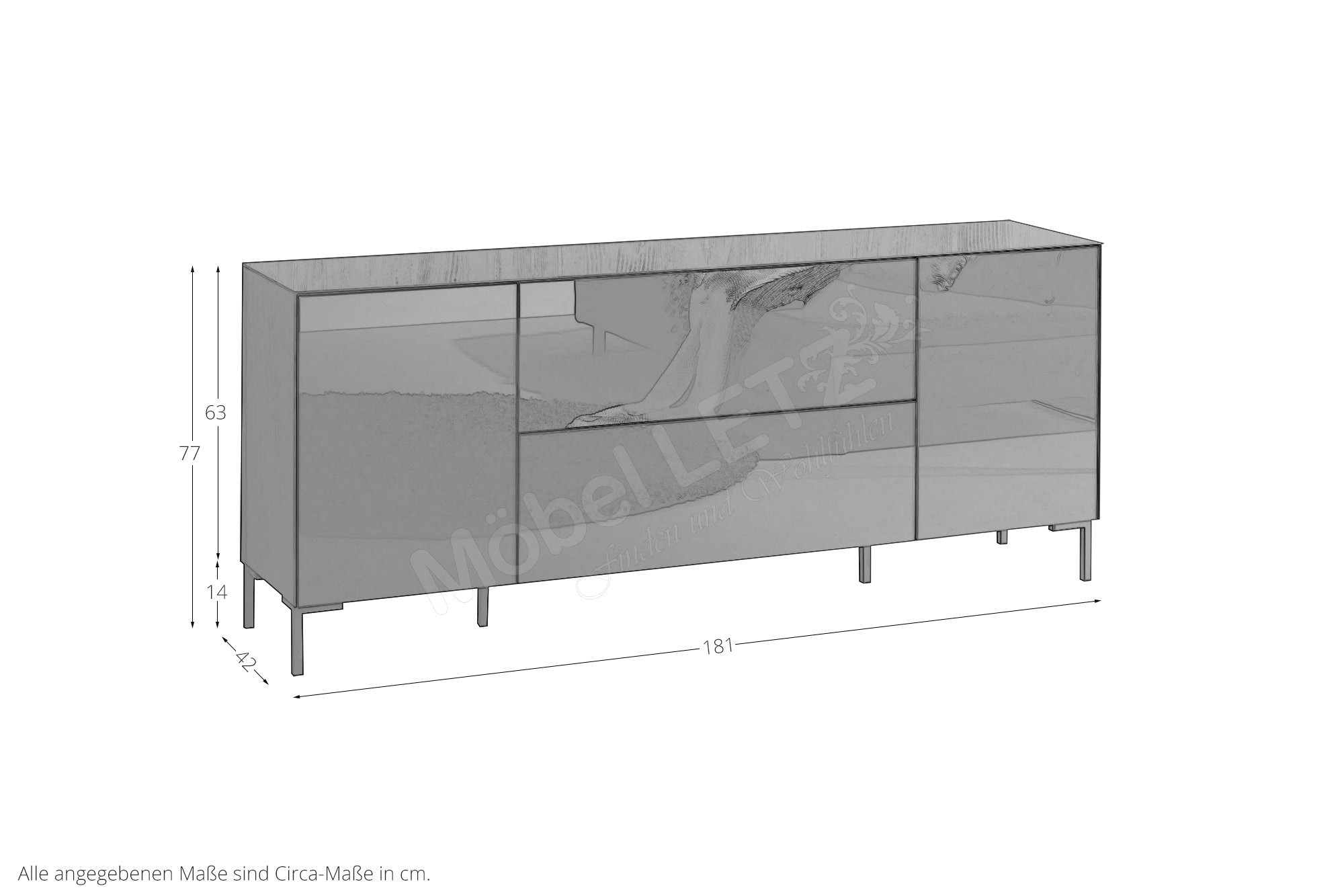 Gesamtmaße des Lowboards: BHT ca. 181/78/42 cm (Art-Nr. Metallfüße Blitz)