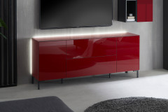 Individuell gestaltbar: Das Lowboard aus der Modellreihe Colors von Mäusbacher vereint markantes Design mit funktionaler Präzision und hochwertiger Verarbeitung. Die glänzenden Glasflächen in edlem Bordeauxrot verleihen dem Möbel eine ausdrucksstarke, luxuriöse Präsenz und setzen stilvolle Akzente in modernen Wohnräumen. Das grifflose Design mit komfortabler Push-to-open-Funktion unterstreicht die klare, puristische Linienführung. Für maximale Flexibilität ist das Lowboard ebenfalls für eine hängende Montage ausgelegt – die benötigten Hängebeschläge sind bereits im Lieferumfang enthalten. Bodengleiter gehören ebenfalls zur Standardausstattung, sodass das Möbel individuell montiert werden kann. Auch für Stauraum ist gesorgt. Das Lowboard ist jeweils mit zwei Türen, zwei festen Böden, einer Klappe sowie einem Schubkasten ausgestattet. Die Klappe verfügt über eine integrierte Dämpfung für sanftes, geräuscharmes Schließen. Der Schubkasten läuft auf hochwertigen Unterflurauszügen und gewährleistet hohen Bedienkomfort sowie Langlebigkeit. Des Weiteren stehen Ihnen je nach Raumanforderung und persönlichem Geschmack drei durchdachte Aufteilungsvarianten zur Auswahl: wählen Sie das Möbel mit beiden Türen auf der linken Seite, auf der rechten Seite oder mit je eine Tür auf beiden Seiten. Als Bestandteil der vielseitigen Modellreihe Colors ist das Lowboard von Mäusbacher mit weiteren Einzelmöbeln kombinierbar und in zusätzlichen Ausführungen erhältlich – für ein harmonisch abgestimmtes Wohnkonzept mit Stil und Charakter.