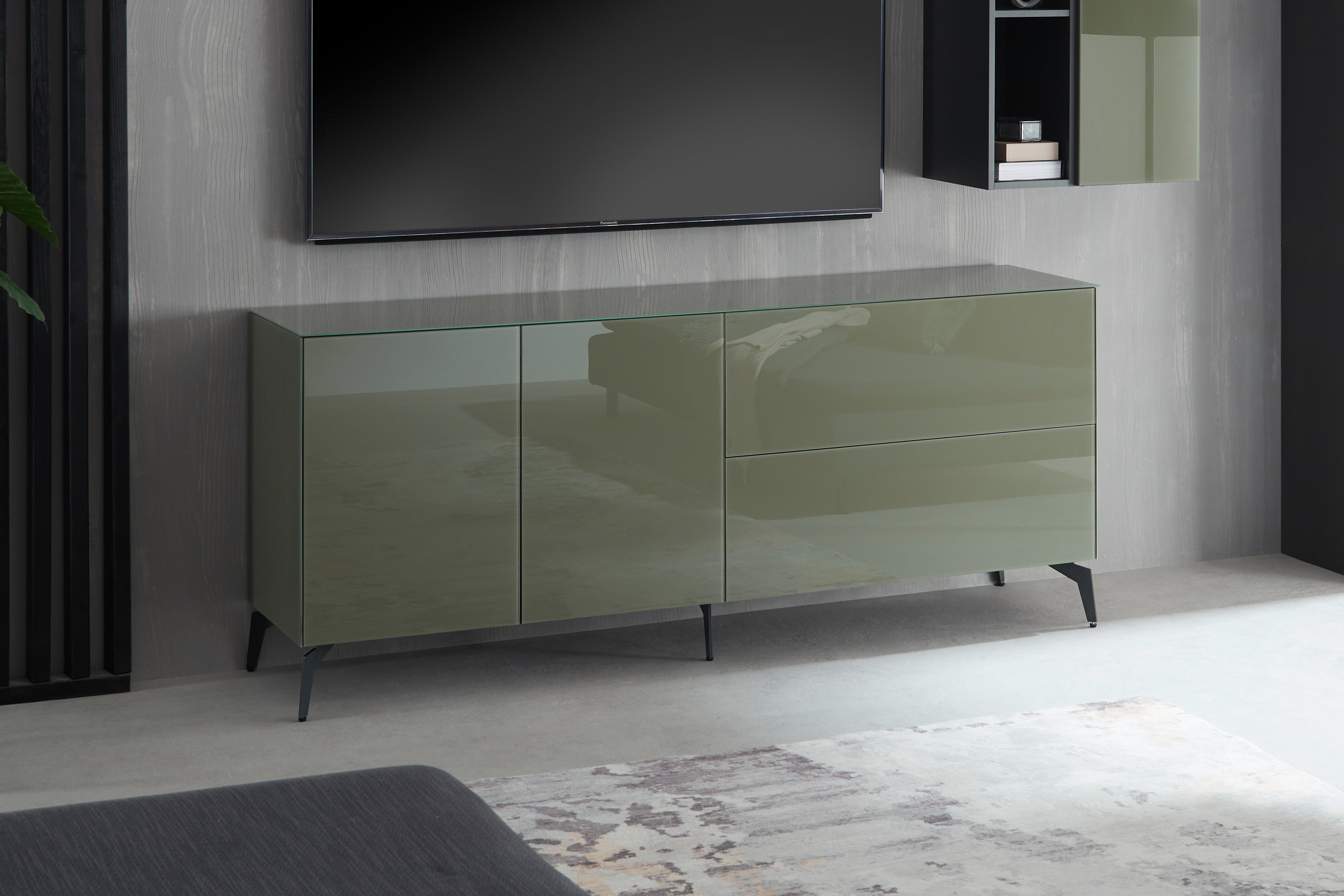 Lowboard von Mäusbacher - Modell Colors 211 Glas olivgrün mit Metallfüßen Colors - Möbel für jeden Wohnbereich