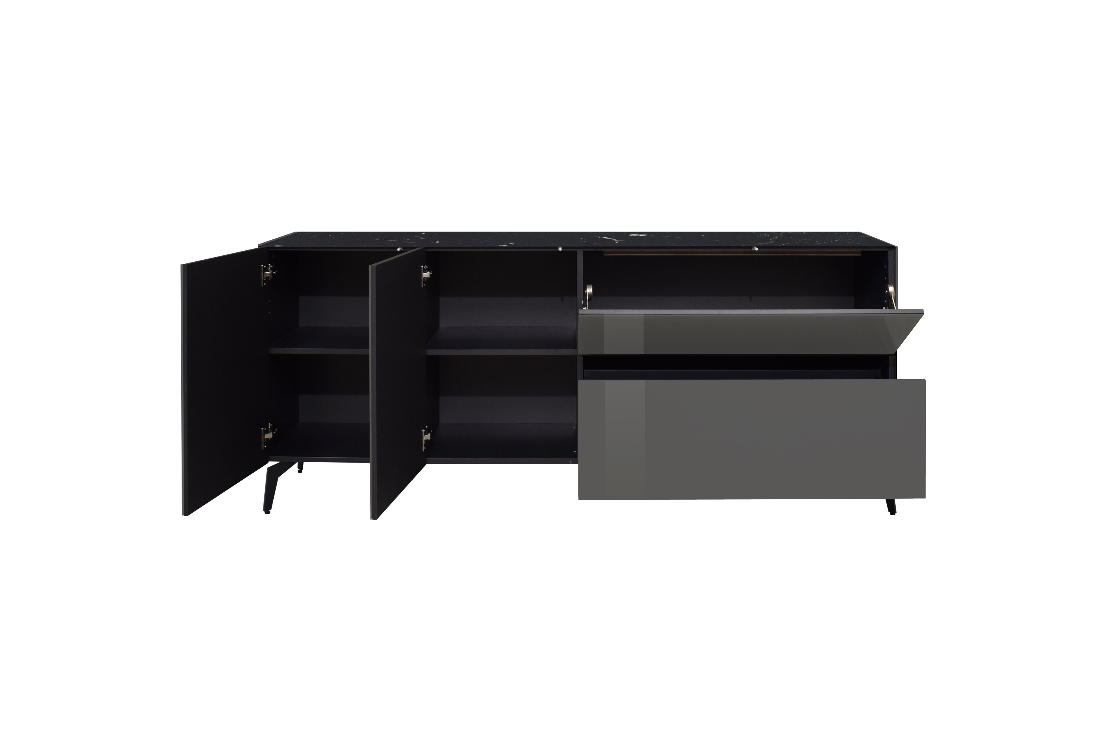 - Lowboard mit 2 Türen, 2 festen Böden, 1 Klappe und 1 Schubkasten