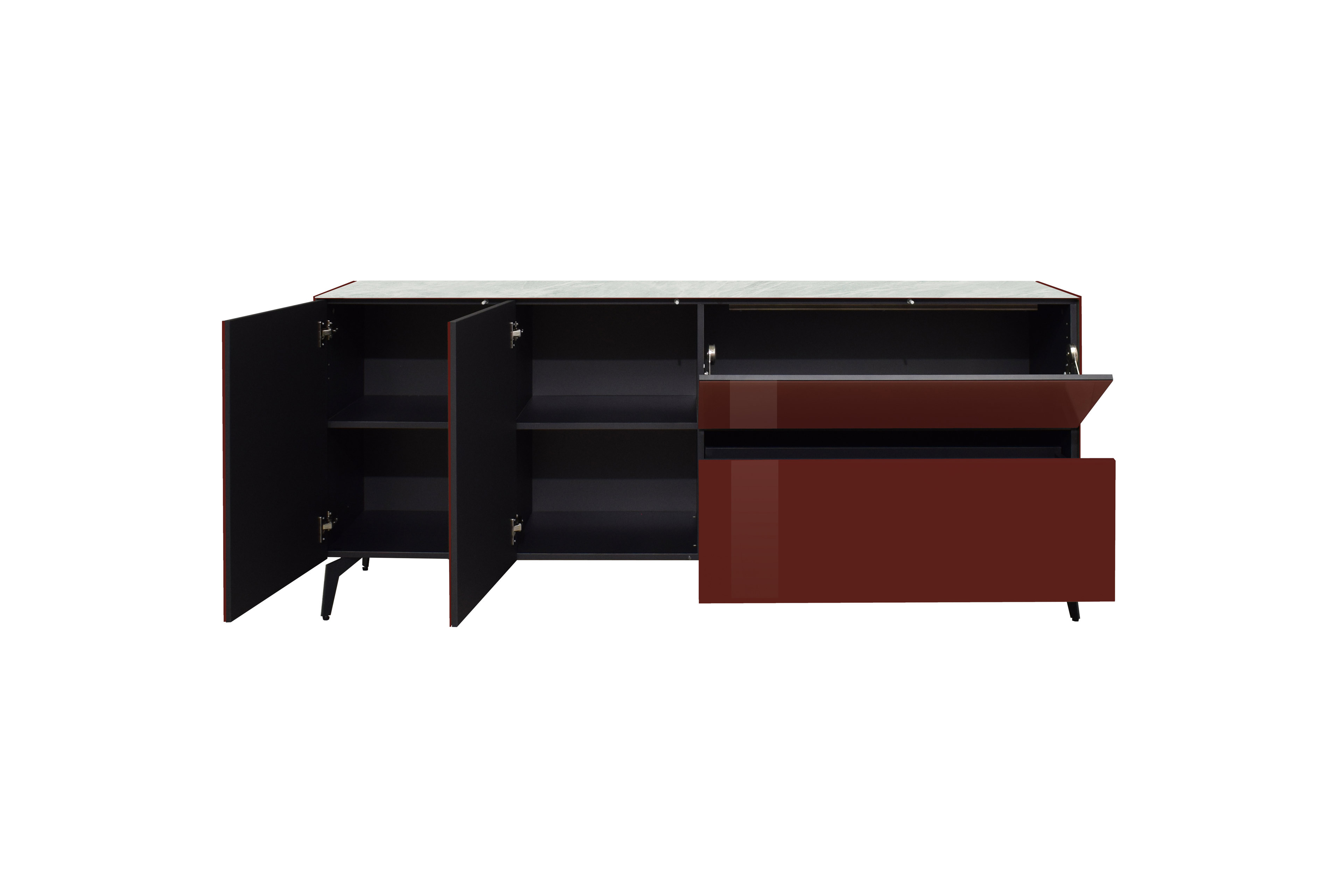 - Lowboard mit 2 Türen, 2 festen Böden, 1 Klappe und 1 Schubkasten