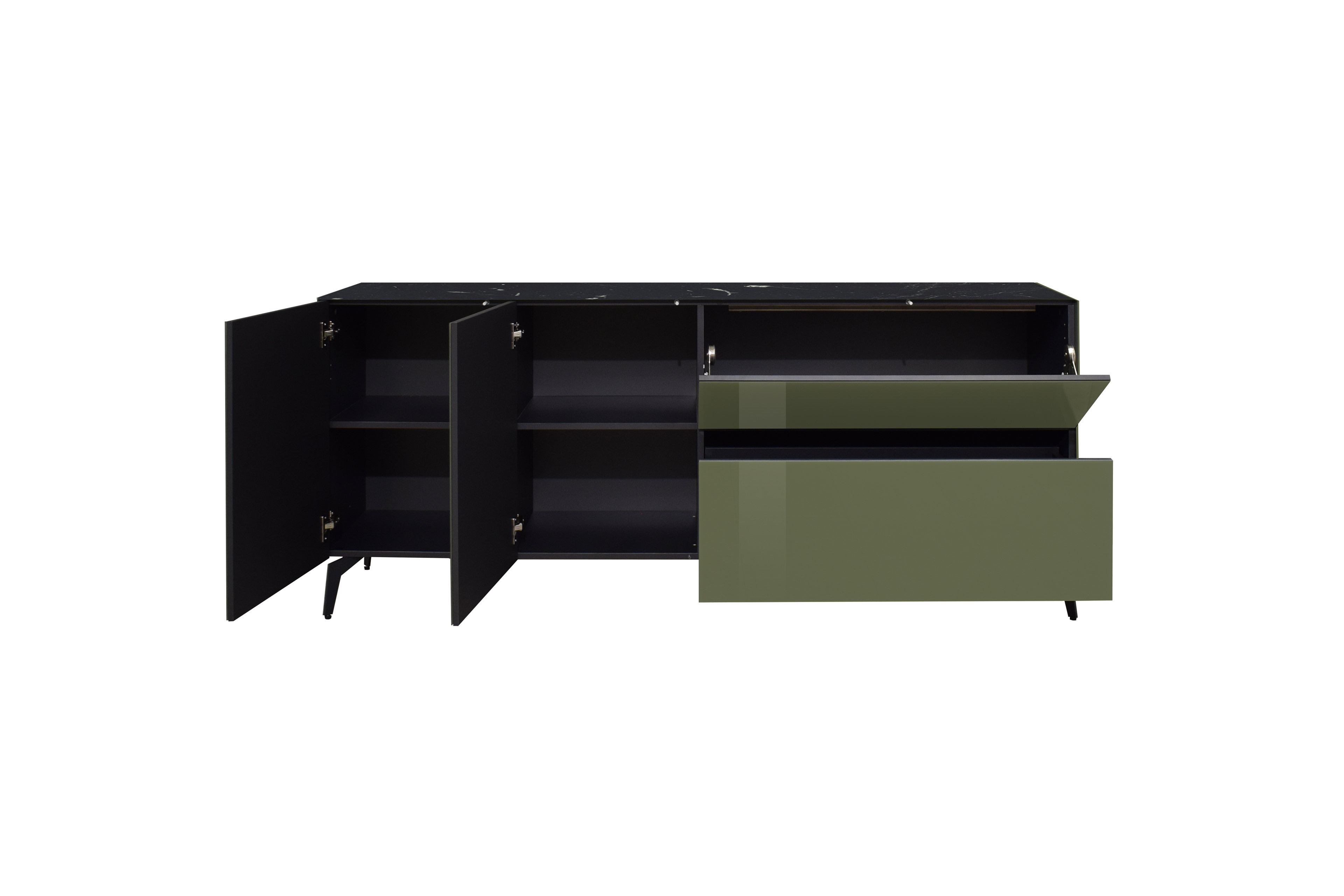 - Korpus (Seitenteile)/ Front: Glas, glänzend, olivgrün