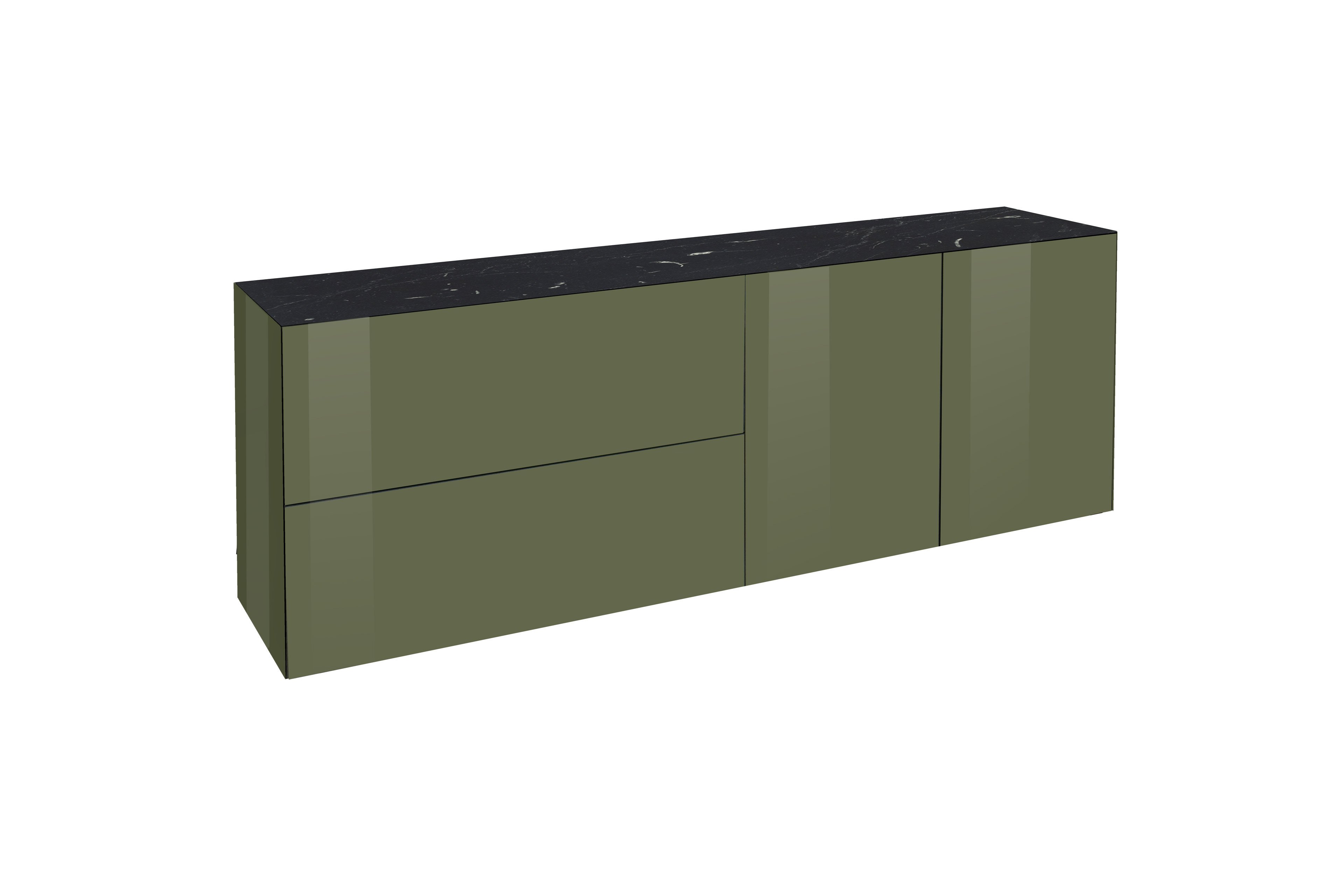 - Korpus (Seitenteile)/ Front: Glas, glänzend, olivgrün