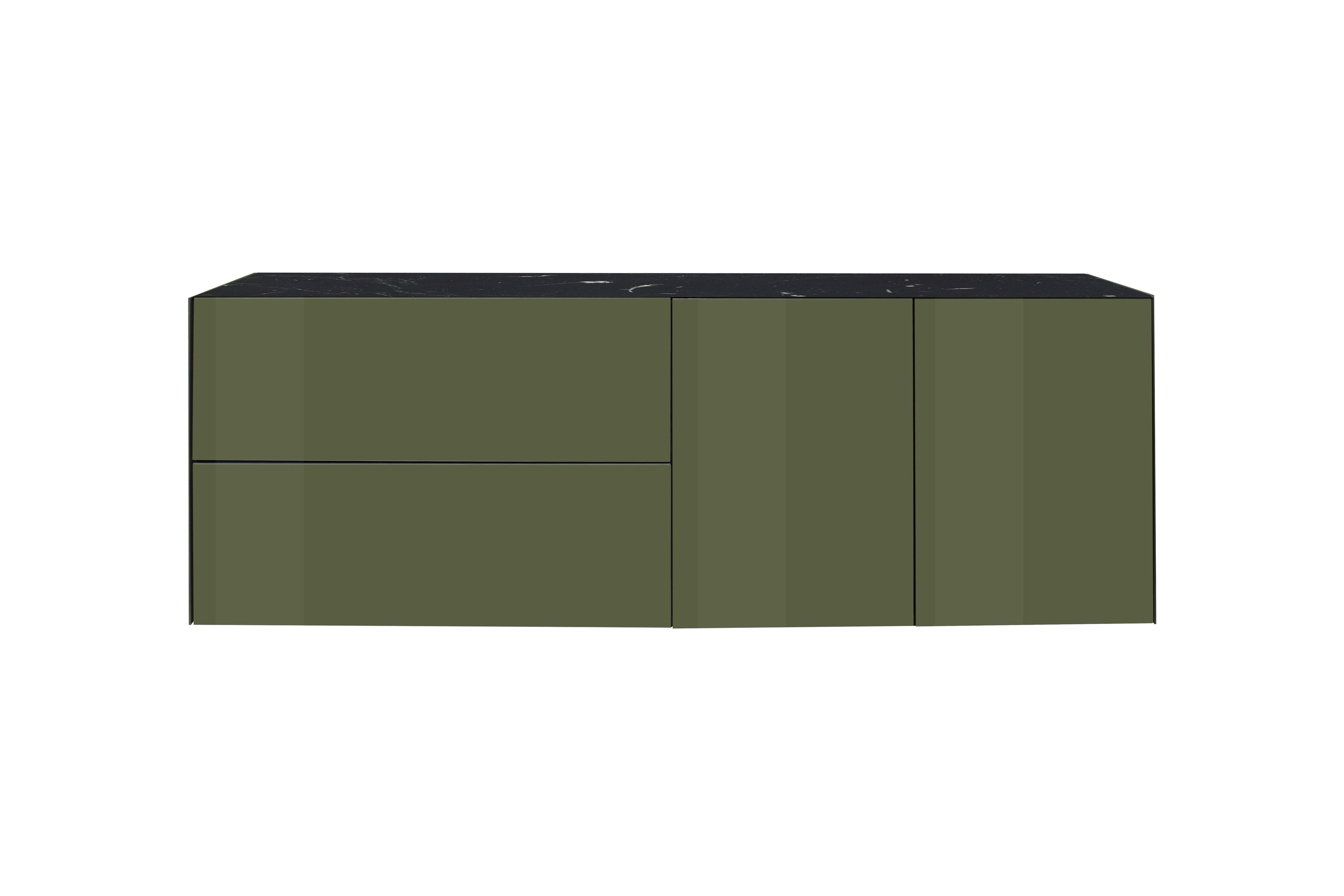 Lowboard von Mäusbacher - Modell Colors 211 Glas olivgrün mit Wendekeramikplatte Colors - Möbel für jeden Wohnbereich