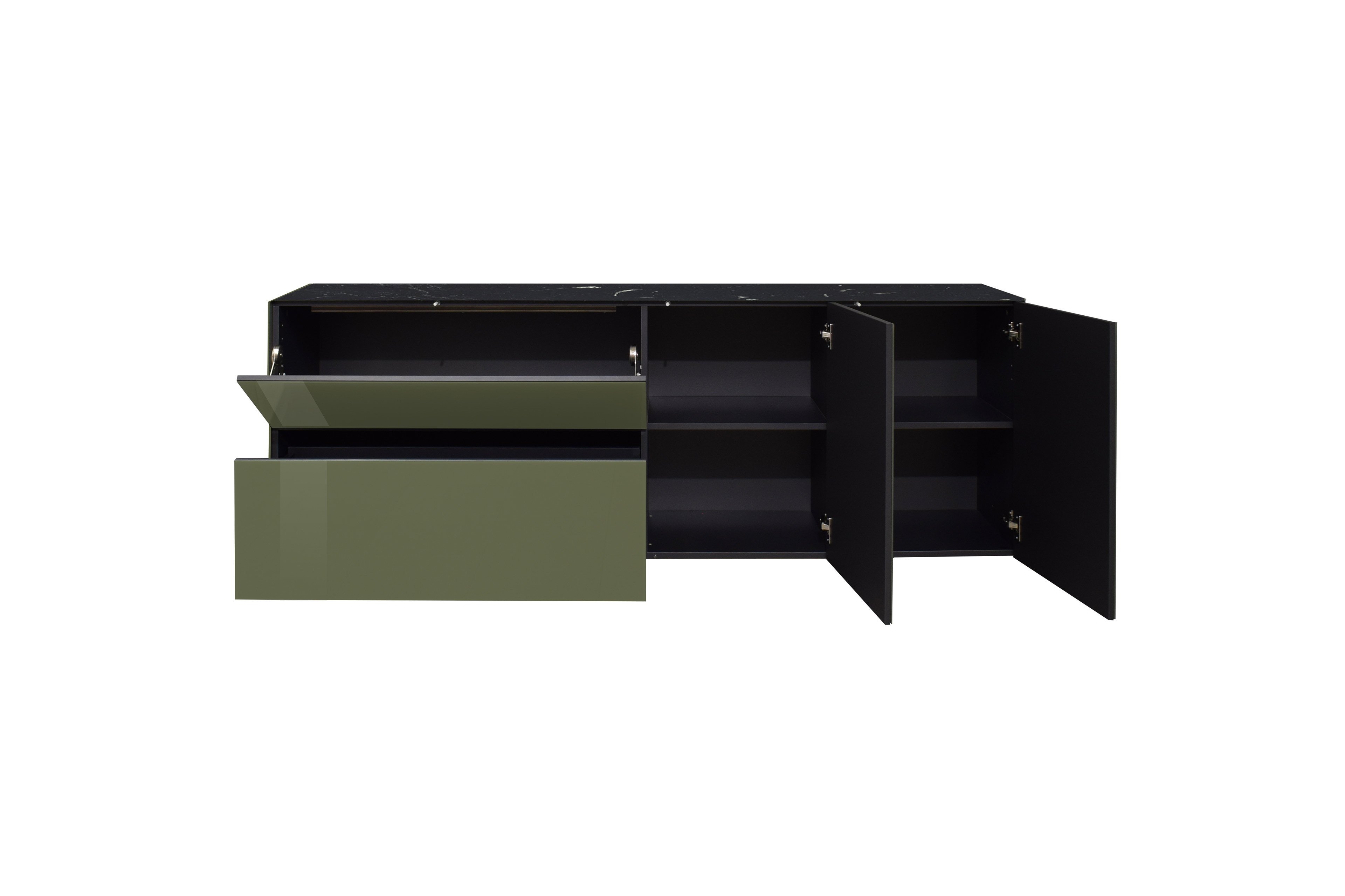 - Lowboard mit 2 Türen, 2 festen Böden, 1 Klappe und 1 Schubkasten