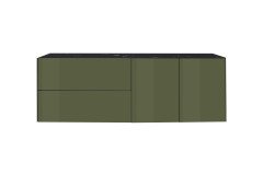 Das Lowboard der Modellreihe Colors von Mäusbacher – für ein stimmiges Wohnkonzept, das Designanspruch, Funktionalität und elegante Individualität vereint. Die glänzenden Glasfronten sowie die Seiten in edlem Olivgrün setzen einen markanten Akzent und verleihen dem Möbelstück eine außergewöhnlich elegante Präsenz. Ein raffiniertes Detail ist die innenliegende, wendbare Oberplatte: Je nach Vorliebe lässt sie sich in schwarzer oder weißer Keramikoptik einsetzen und ermöglicht so eine harmonische Anpassung an unterschiedliche Wohn- und Farbkonzepte. Die grifflose Gestaltung mit komfortabler Push-to-open-Funktion betont die klare Linienführung und unterstreicht den modernen Charakter des Solisten. Neben verschiedenen Fußvarianten besteht zudem die Möglichkeit, das TV-Möbel als Hängelowboard zu montieren. Die hierfür erforderlichen Hängebeschläge für die wandhängende Installation sind bereits im Lieferumfang enthalten. Für maximale Gestaltungsfreiheit stehen drei Montagevarianten zur Auswahl: mit beiden Türen links, beiden Türen rechts oder jeweils einer Tür auf jeder Seite. Unabhängig von der gewählten Konfiguration verfügt das Lowboard stets über zwei Türen, zwei festen Böden, eine Klappe sowie einen Schubkasten. Die Klappe ist mit einer integrierten Dämpfung ausgestattet und schließt angenehm leise, während der Schubkasten auf hochwertigen Unterflurauszügen läuft und ein besonders komfortables Handling gewährleistet. Als Bestandteil der vielseitigen Modellreihe Colors lässt sich das Lowboard ideal mit weiteren Einzelmöbeln von Mäusbacher kombinieren.