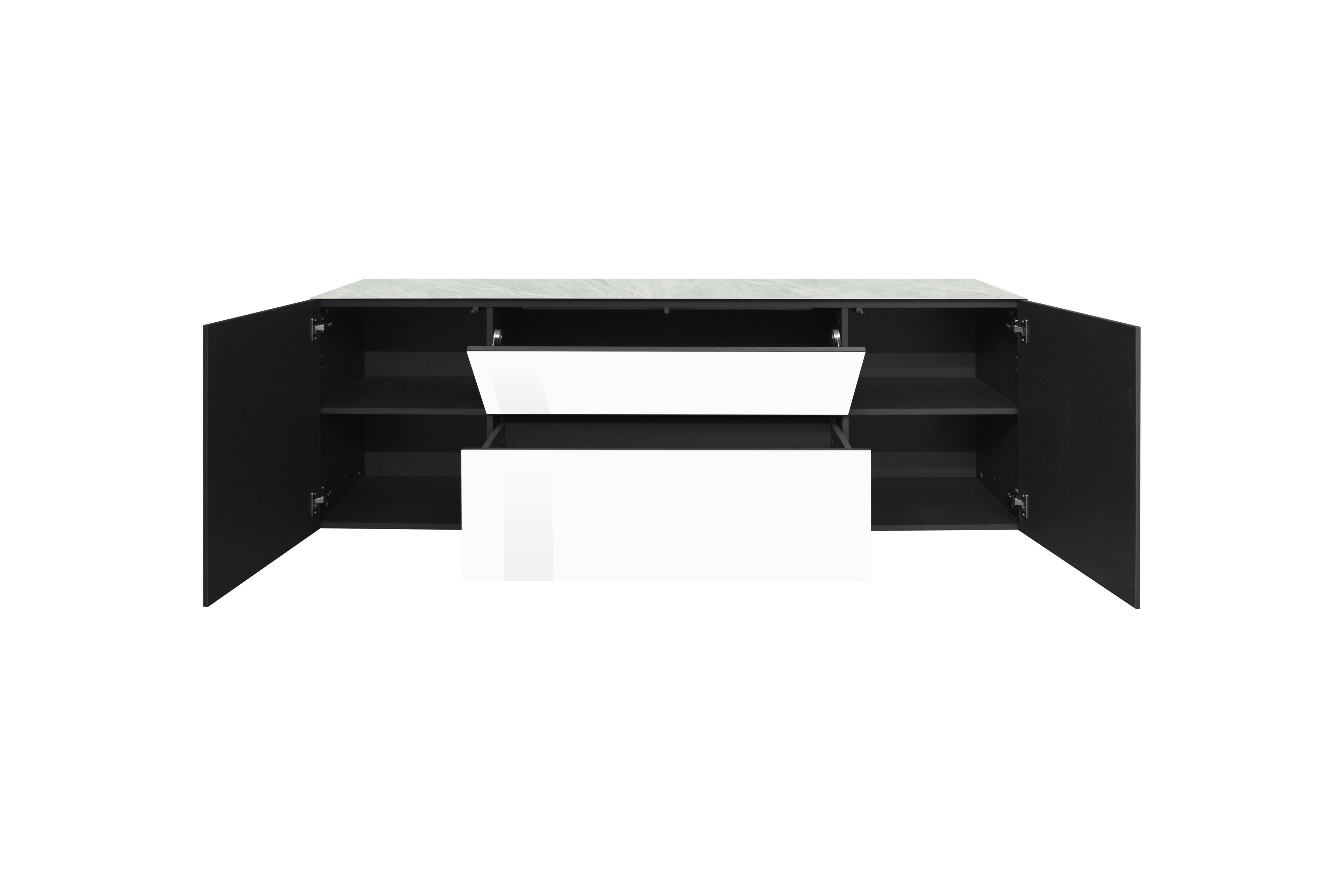 - Lowboard mit 2 Türen, 2 festen Böden, 1 Klappe und 1 Schubkasten