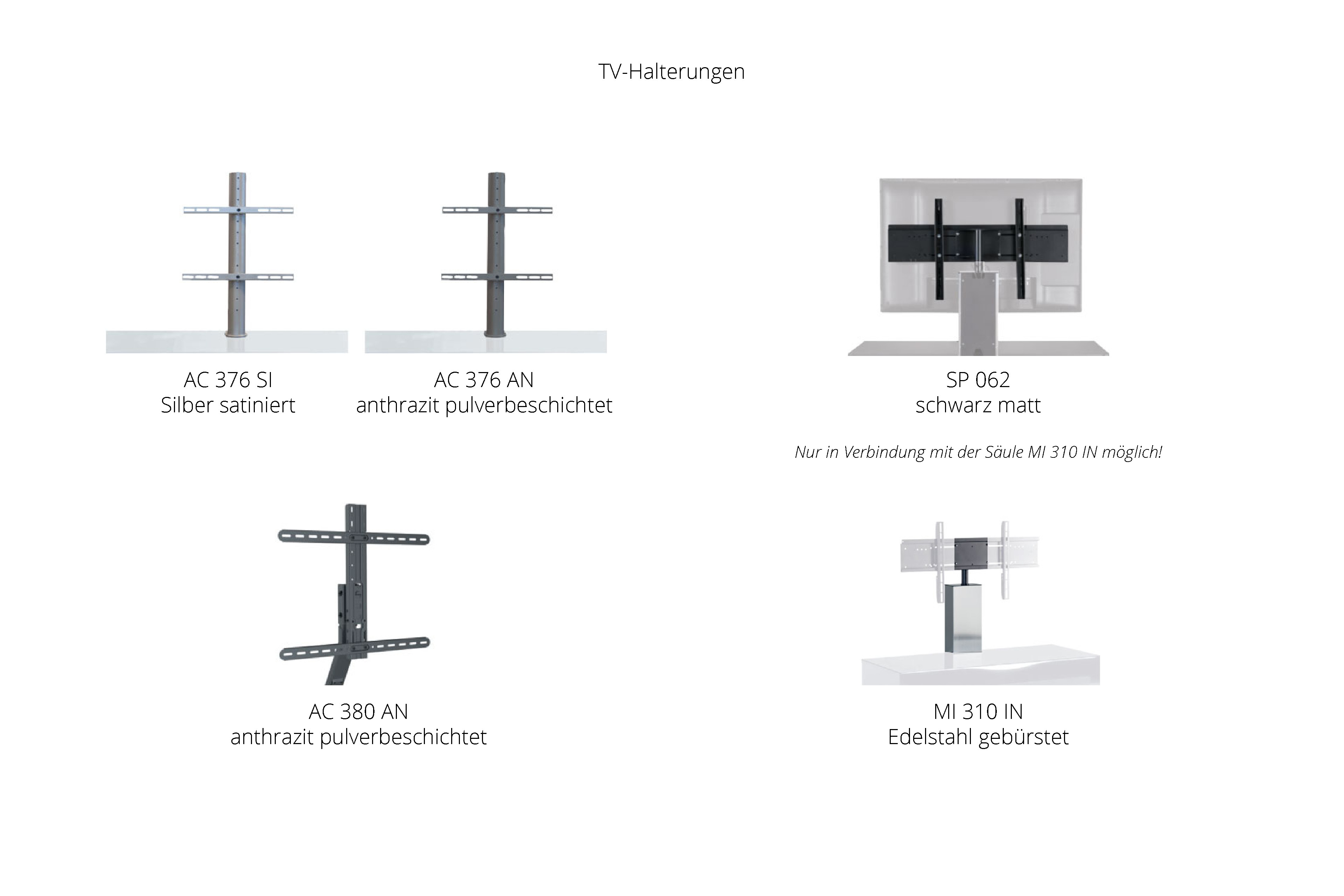 TV-Säule aus Stahl gebürstet, mit Drehfunktion + variable TV-Halterung für Flachbildschirme bis 75 Zoll, drehbar (Art-Nr. MI 310 IN + SP 062 NE)