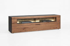 - Lowboard mit 1 Holzklappe mit Glasausschnitt, 1 Doppelschubkasten und 1 Holzboden