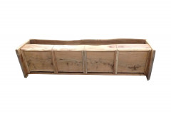 Lowboard ebenso: Vier geräumige Schubladen und ein offenes Fach bieten flexible Aufbewahrungsmöglichkeiten für Elektronik, Bücher oder dekorative Elemente. Die Kombination aus warmem Holz und klarer Linienführung lässt sich in unterschiedliche Wohnstile integrieren, vom modernen Loft über skandinavisch inspirierte Einrichtungen bis hin zu klassisch gemütlichen Wohnräumen. Durch die offene Gestaltung wirkt das Möbelstück leicht und elegant, während es gleichzeitig durch die massive Verarbeitung Stabilität und Wertigkeit vermittelt. Wer Wert auf Authentizität und ein Möbelstück mit Charakter legt, findet hier ein Designobjekt, das sowohl praktisch als auch ästhetisch begeistert.