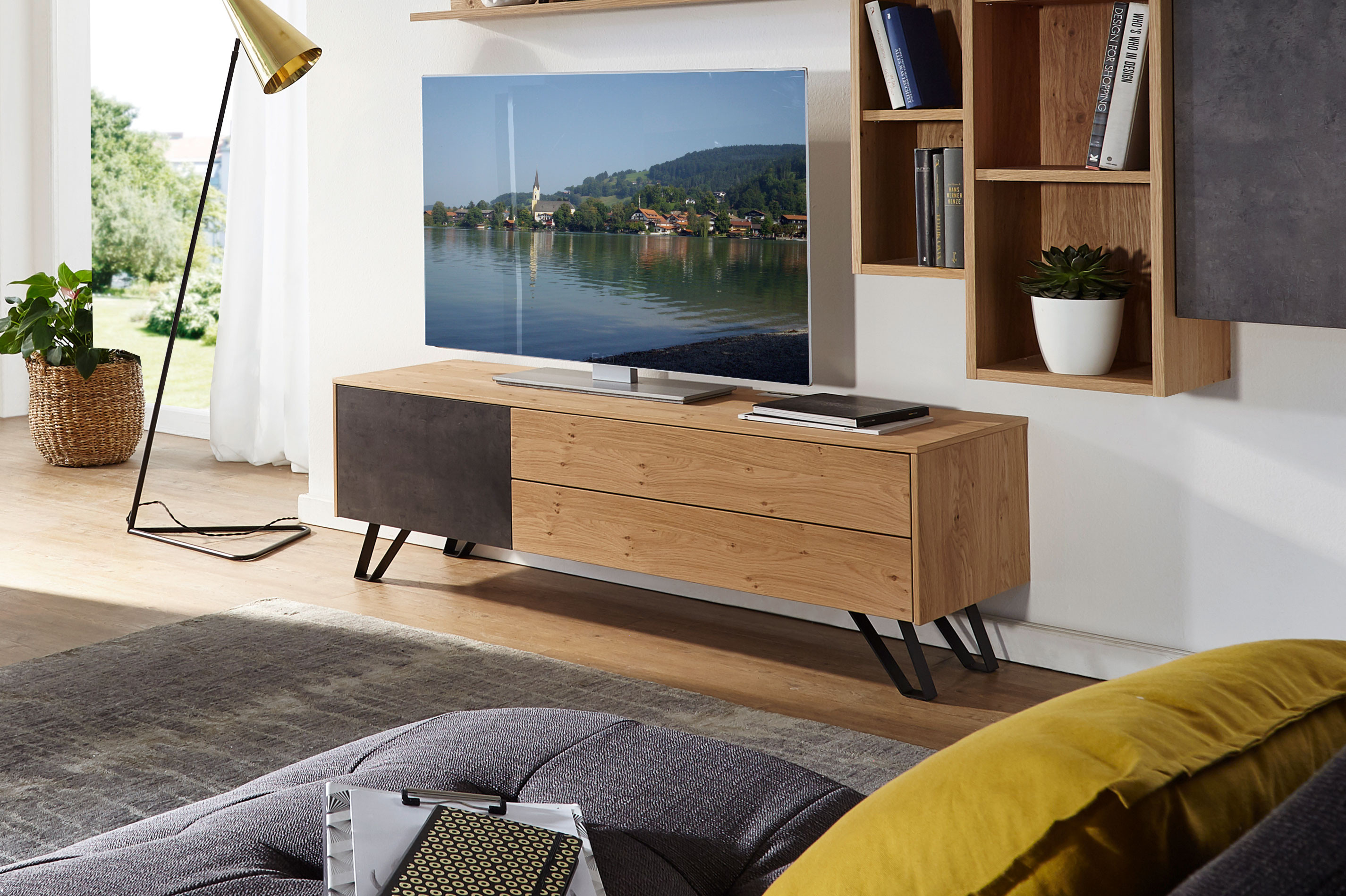 Lowboard von Schösswender - Modell Selecto SE 35UR Wildeiche/ Beton dunkel Selecto - Möbel für ein neues Wohngefühl