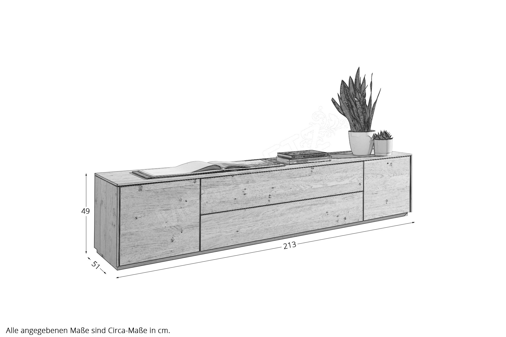 Gesamtmaße des Elements BHT ca.: 224,1/64,3/43,8 cm (Art-Nr. SF9)