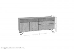 - Lowboard mit 2 Holztüren, 1 Holzboden und 4 Schubkästen