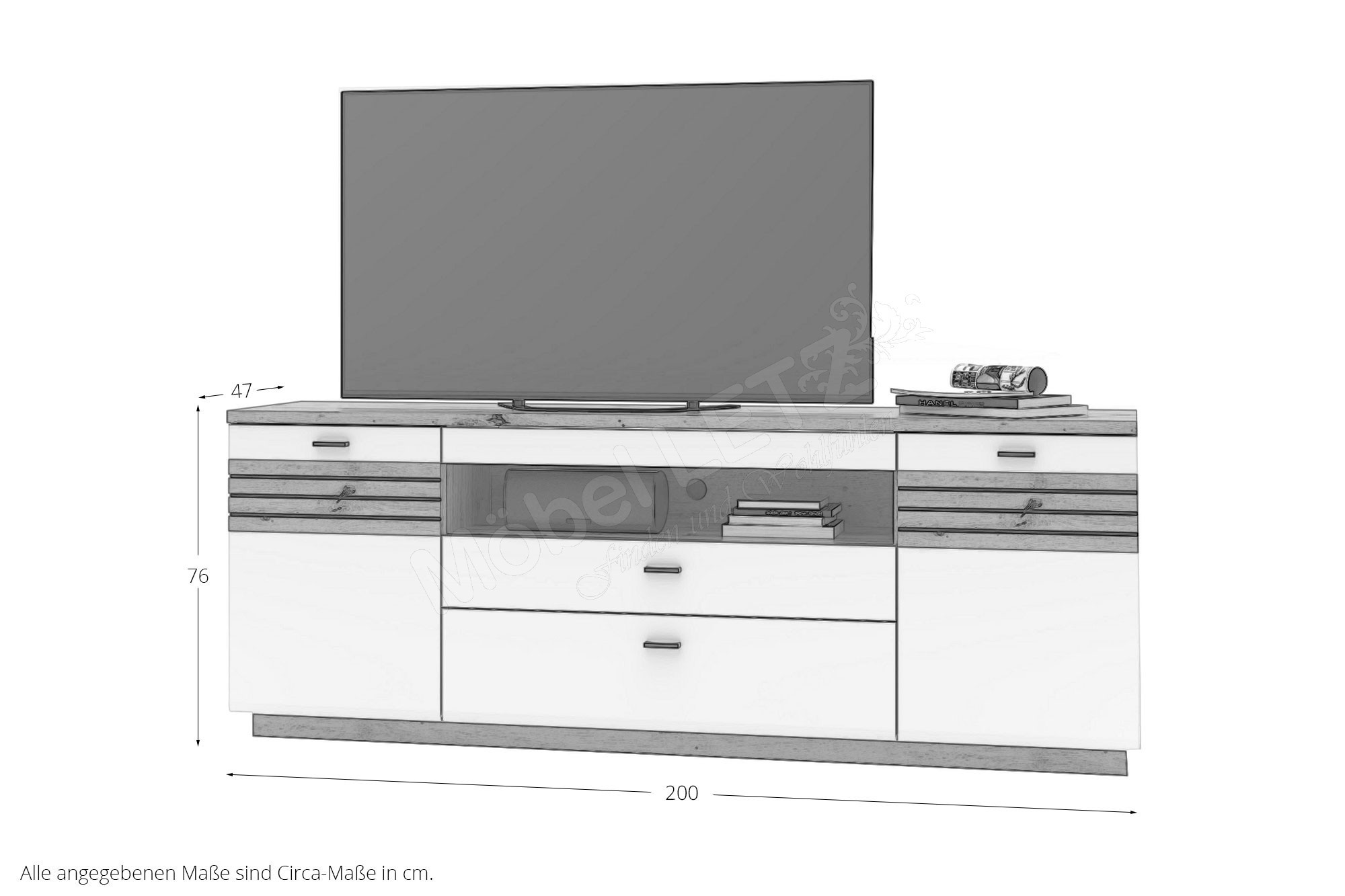 - 1 x 40 C5 HW 39 - TV-Unterteil, BHT ca.: 200/76/47 cm