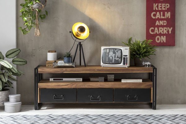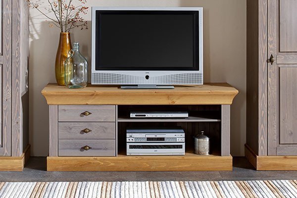 Verschiedene Formen, Materialien und Ausführungen, vom TV-Schrank aus Massivholz im Landhausstil über das TV-Rack aus Glas und Metall im Industriedesign bis zum TV-Standfuß aus Edelstahl im puristischen Look, bieten eine mannigfaltige Auswahl aus dem facettenreichen Pool der TV-Möbel.