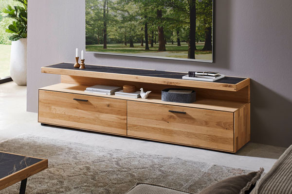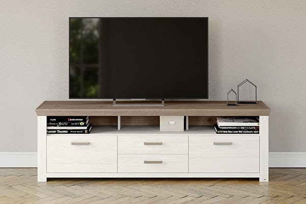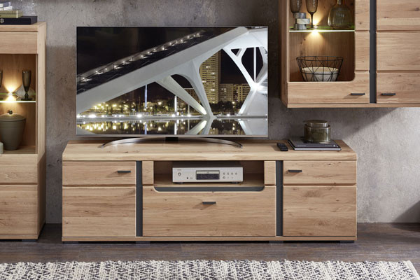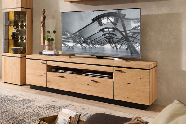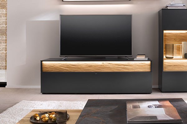 TV-Schränke gibt es in den unterschiedlichsten Ausführungen, beispielsweise als TV-Lowboard. Dieses TV-Möbel ist ein Klassiker und zeichnet sich, wie der Name bereits vermuten lässt, durch seine geringe Höhe aus, ist in der Breite dafür überaus variabel. So findet sich für den kleinen Fernseher, etwa das Zweitgerät im Gästezimmer, ein ebenso adäquates TV-Lowboard, wie für den Oberklasse-Fernseher mit OLED- oder QLED-Technik. Meist gesellt sich bei dem TV-Lowboard zu der zentralen Stellfläche für das TV-Gerät eine bunte Mischung aus offenen und geschlossenen Fächern sowie Türen oder Klappen, wodurch allerlei Raum für das benötigte Zubehör geboten wird. Ähnlich verhält es sich bei einer anderen Variante der TV-Möbel. Ein TV-Schrank kann sich beispielsweise auch als offensichtlicher Schrank präsentieren, ohne seine Bestimmung als Fernsehmöbel auf den ersten Blick zu offenbaren, denn er verbirgt seinen „Schatz“ hinter Türen. Je nach Modell und Hersteller handelt es sich um Dreh- oder Schiebetüren, welche teilweise sogar per Schloss gesichert werden können, um unbefugten Zugriff zu verhindern. Für welchen TV-Schrank Sie sich entscheiden, bleibt ganz Ihnen überlassen - eine umfangreiche Auswahl erhalten Sie auf jeden Fall im Möbel Letz Online-Shop.
