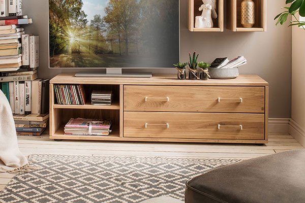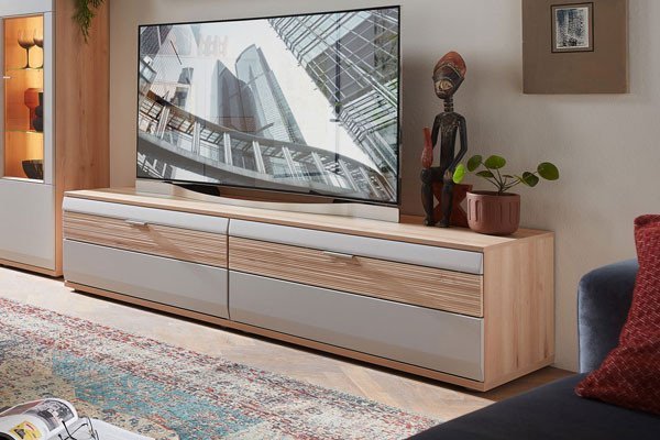 Ob hoch oder flach, der TV-Schrank ist immer die ideale Bühne