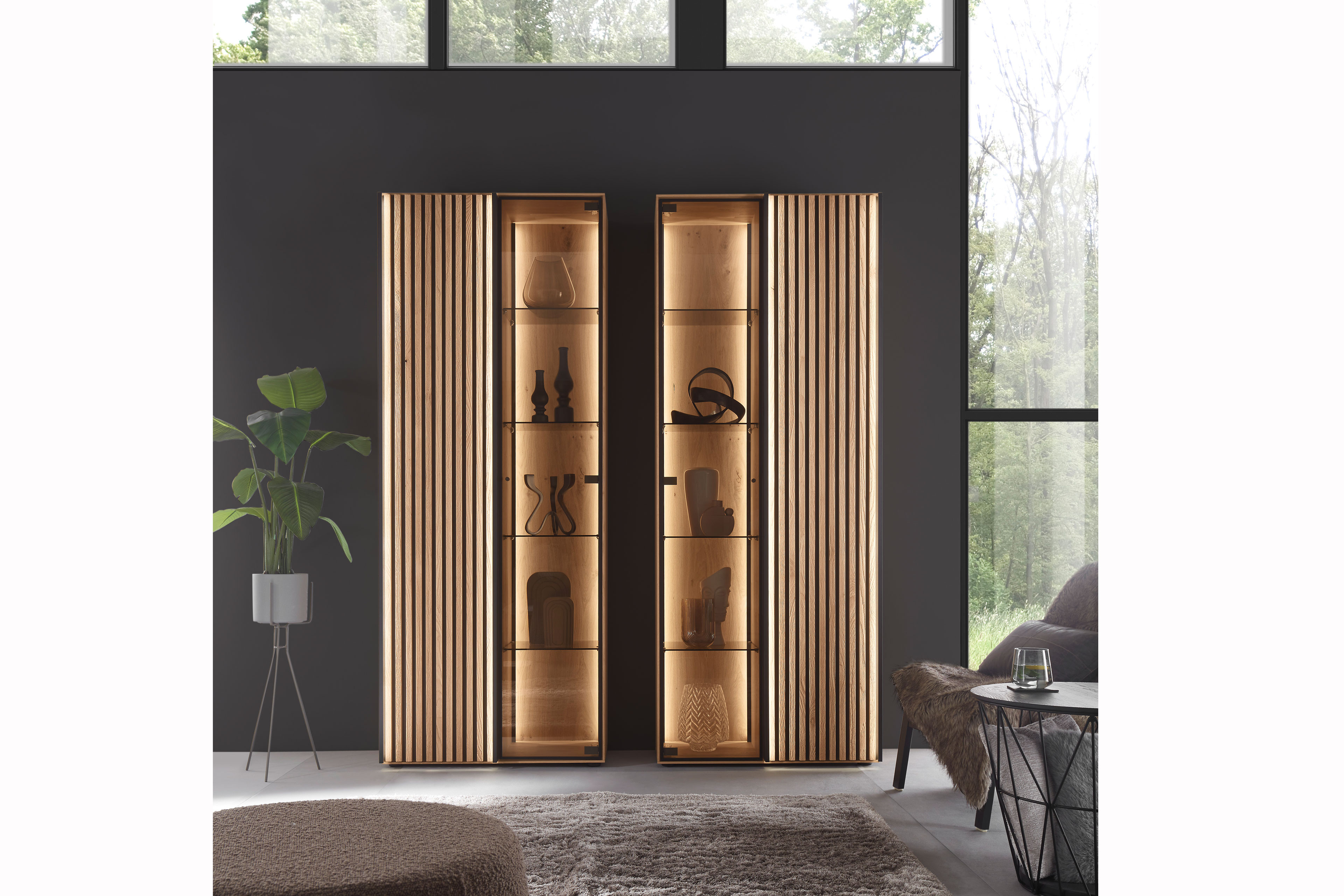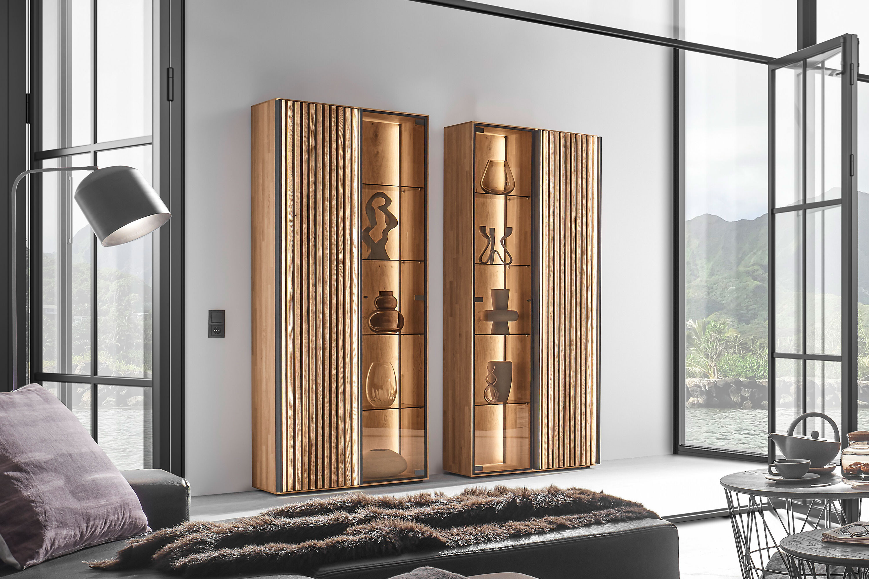 Vitrine von Hartmann - Modell Selino Kerneiche natur/ anthrazit Selino - Naturschauspiel aus Massivholz und Lack