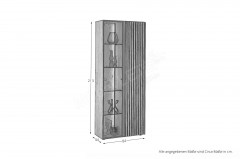 - Vitrine mit 1 Glastür (links), 1 Lamellentür, 4 Glasböden, 2 Holzeinlegeböden und 2 Holzböden