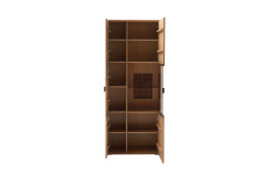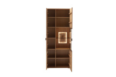 Diese stilvolle Vitrine aus der Kollektion Freeport von MCA furniture in Ast- und Balkeneiche entpuppt sich als absoluter Hingucker in Ihrem Zuhause. Der markante Glasausschnitt auf der rechten Seite gibt den Blick auf eine hinterleuchtete Hirnapplikation frei, die als besonderes Highlight wirkt – ideal zur Präsentation von dekorativen Objekten, Gläsern oder besonderen Erinnerungsstücken. Die Maserung der Balkeneiche bringt Wärme und Natürlichkeit in den Raum, während die dezenten Metallgriffe einen modernen Akzent setzen. Die Vitrine eignet sich hervorragend als stilvolles Möbelstück im Wohnzimmer, Essbereich oder sogar im Flur, um Ordnung zu schaffen und gleichzeitig einen Blickfang zu bieten. Hinter den blickdichten Türen und Schubladen lassen sich Alltagsgegenstände praktisch und geordnet verstauen. Ob als Solitär oder Teil einer Wohnwand – diese Vitrine überzeugt in allen Hinsichten. MCA furniture – Innovation im Wandel der Zeit.